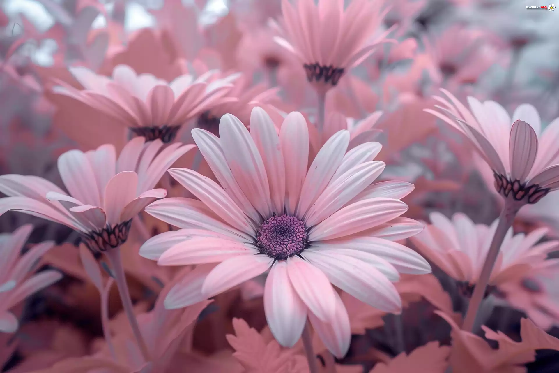 Różowe, Kwiaty, Stokrotki afrykańskie - Zdjęcia