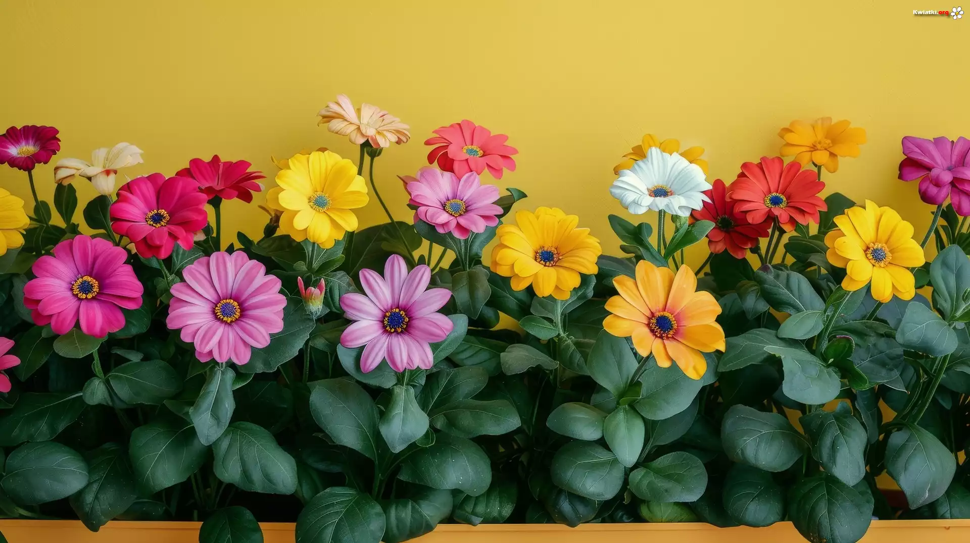 Kwiaty, Kolorowe, Stokrotki afrykańskie, Listki, Tło - Zdjęcia