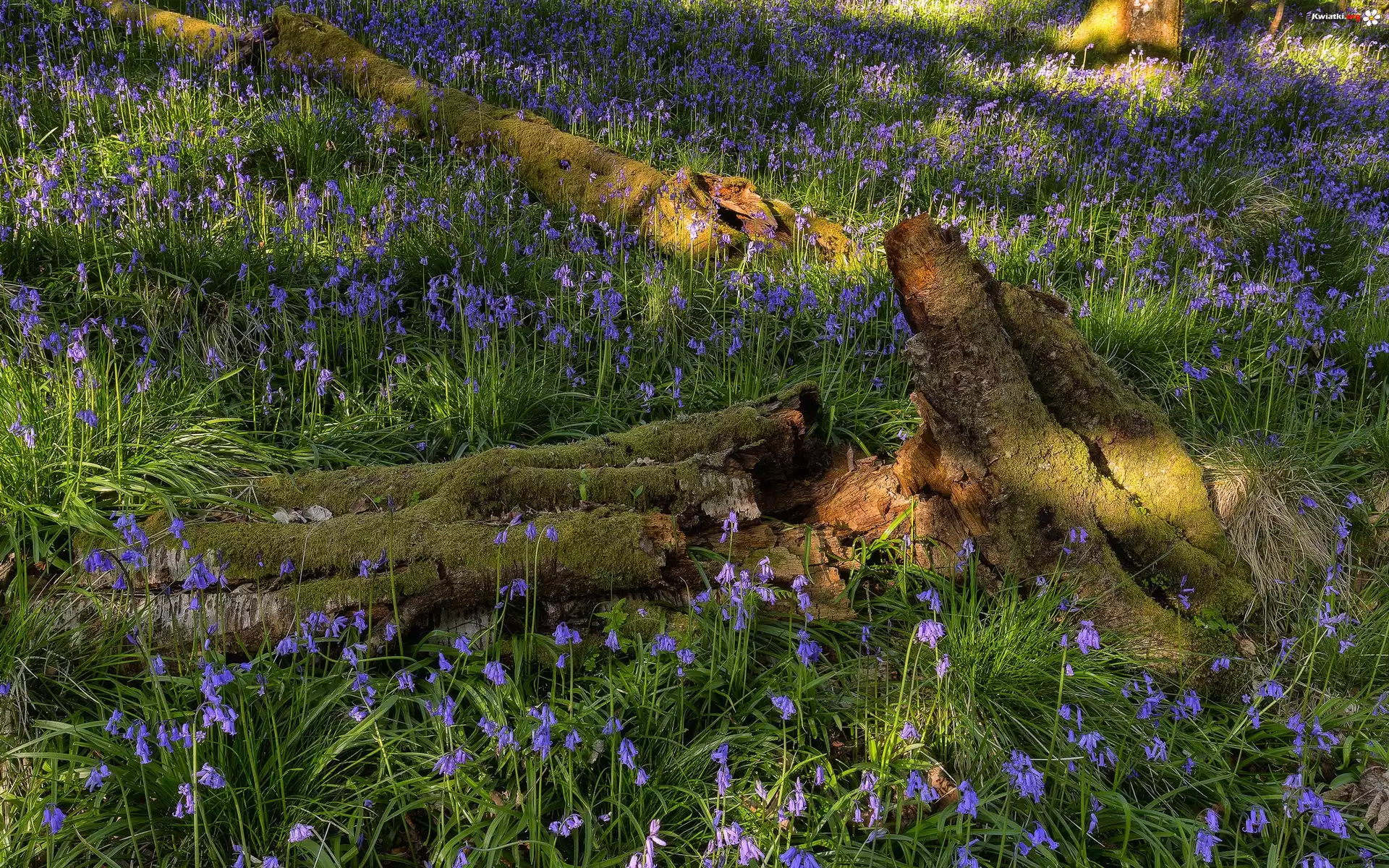 Kwiat Łąka, Powalone, Omszałe, Drzewo, Kwiaty, Dzwonki