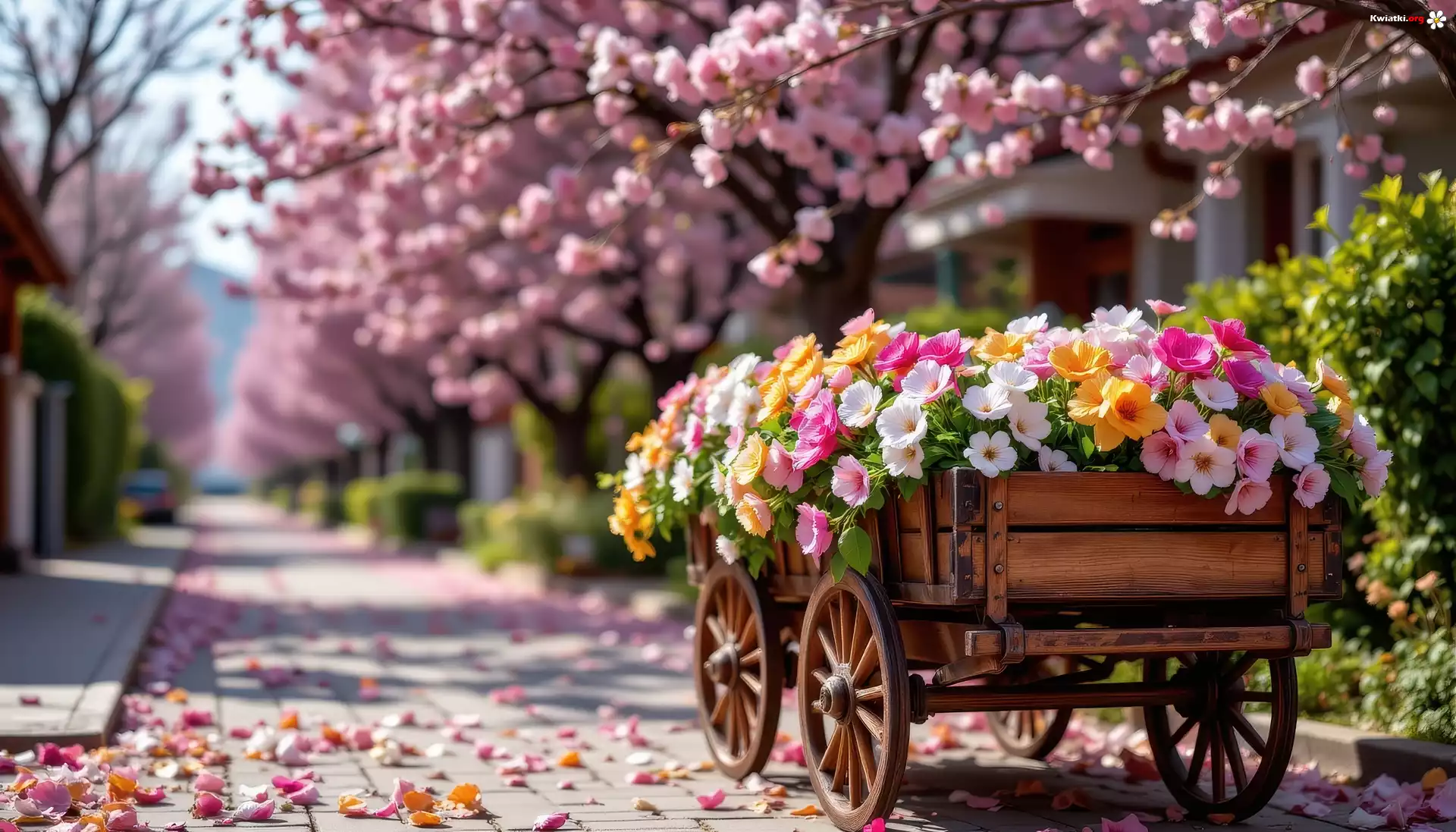 Wóz, Kolorowe, Kwiaty, Aleja, Kwitnące, Drzewa - Zdjęcia