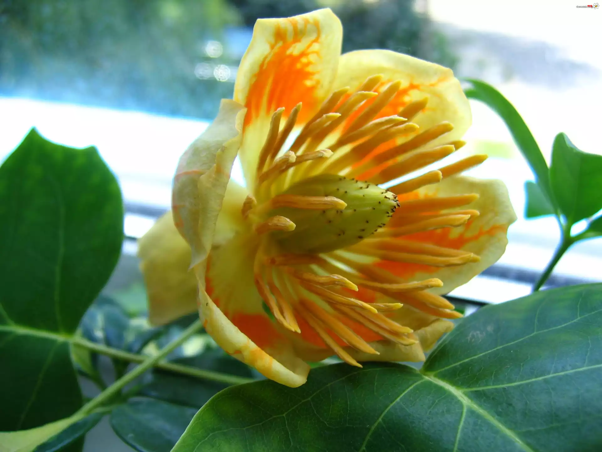 Amerykański,żółty Kwiat, Tulipanowiec, Kwitnący Tulipanowiec amerykański, Żółty, Liście, Zbliżenie