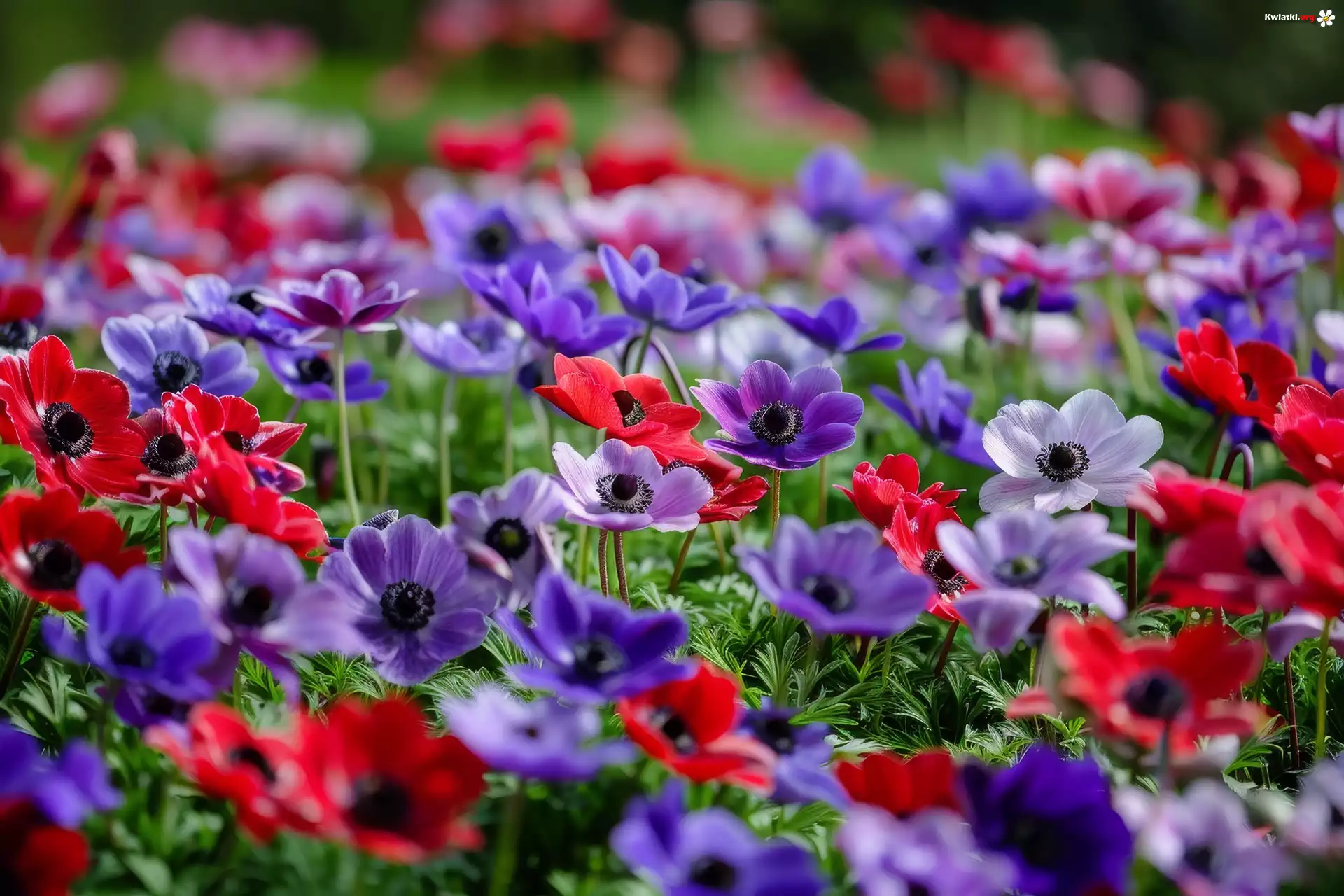 Zawilce, Anemony, Kolorowe, Kwiaty, Łąka - Zdjęcia