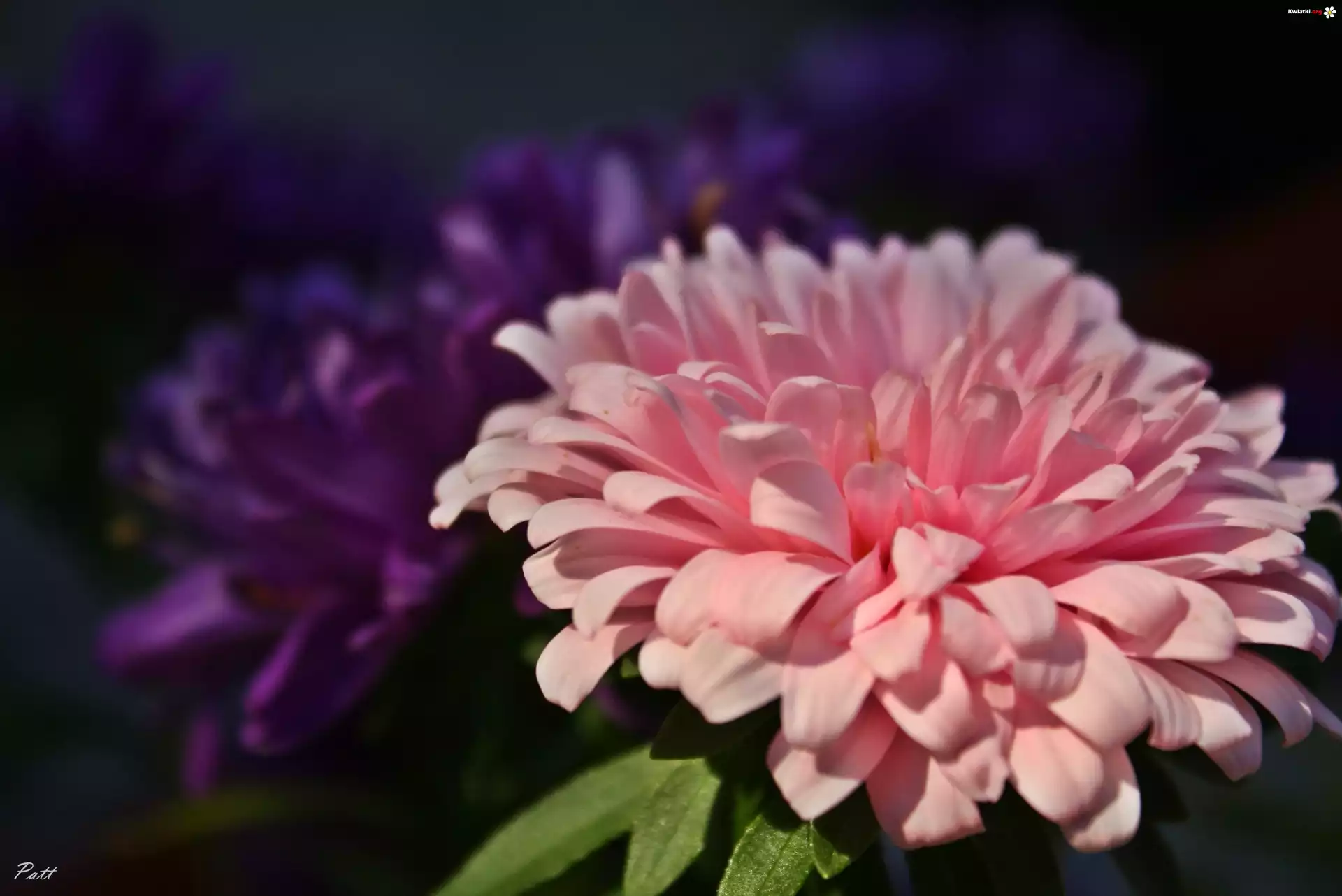 Kwiaty, Różowe, Astry chryzantemowe, Liście Jesienne, Kwiaty, Astry chryzantemowe, Bukiet, Jabłko Astry chryzantemowe, Bukiet Białe, Różowe, Astry Różowy, Aster, Kwiat Różowy, Aster, Kwiat Kwiat, Aster, Biało, Fioletowy Motyl, Bielinek, Kwiat, Aster Fioletowy, Aster, Kwiat, Zbliżenie