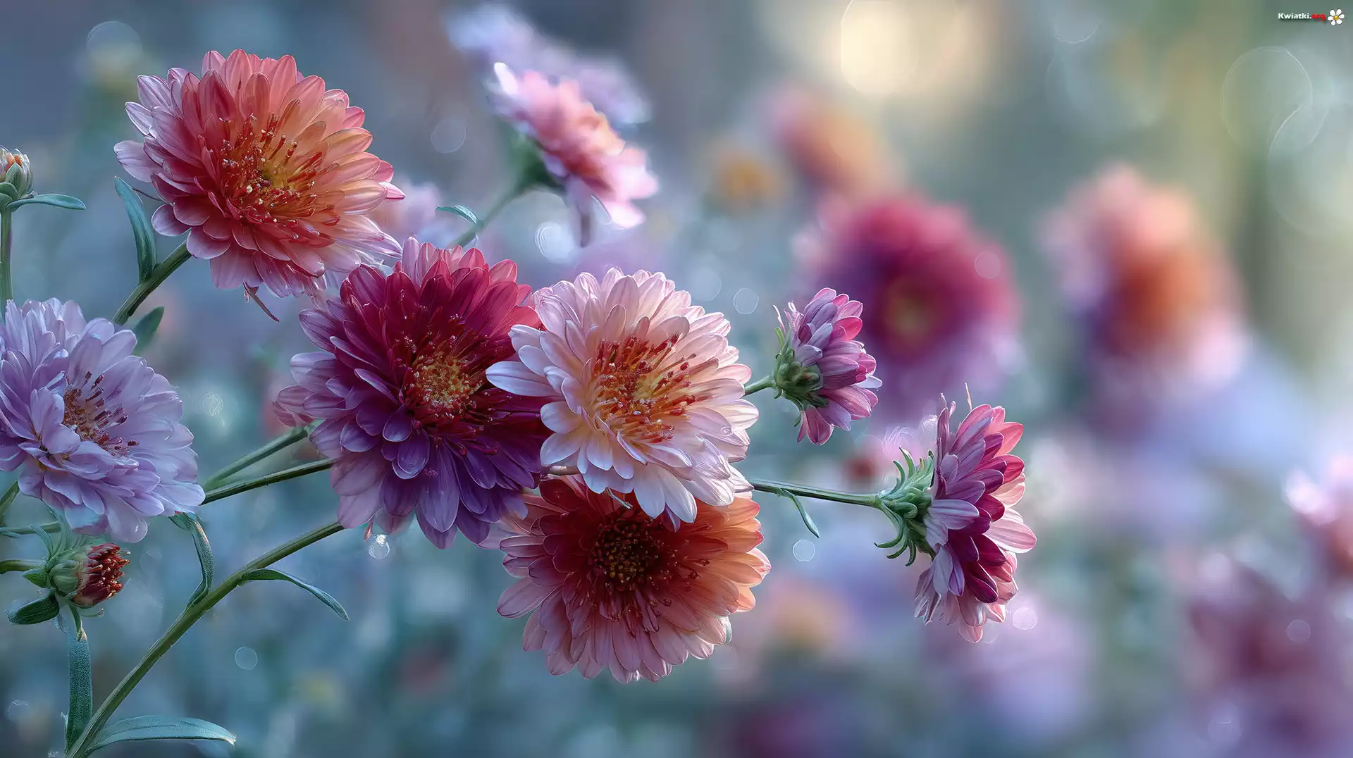 Różowe, Astry, Kwiaty, Grafika, AI - Zdjęcia