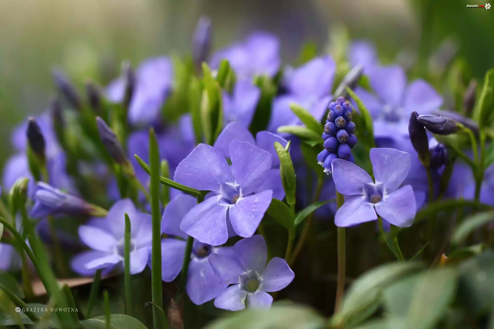 Kwiat Barwinki, Szafirki, Niebieskie, Kwiaty