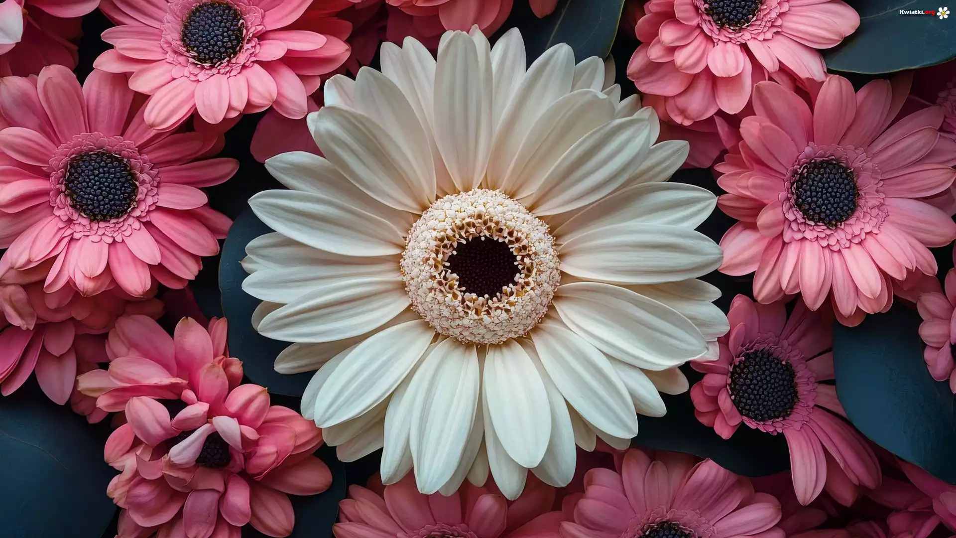 Biała, Różowe, Gerbery - Zdjęcia