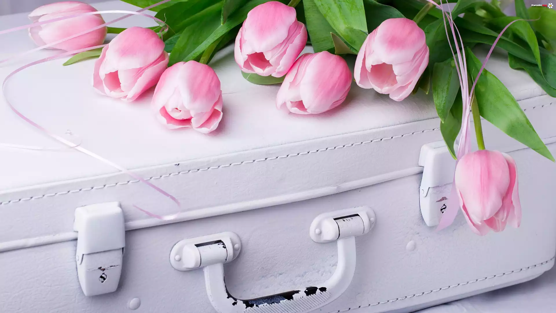 Biała, Walizka, Różowe, Tulipany - Zdjęcia