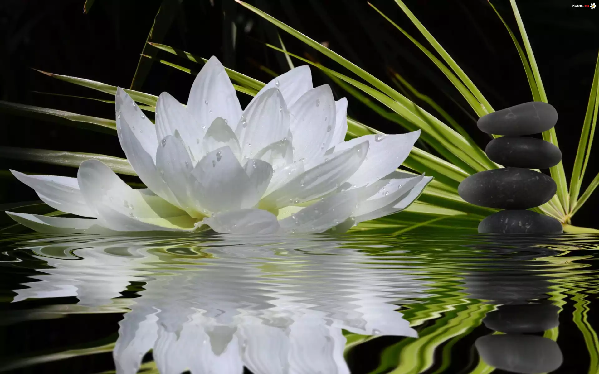 Biała, Lilia, Woda, Odbicie - Zdjęcia