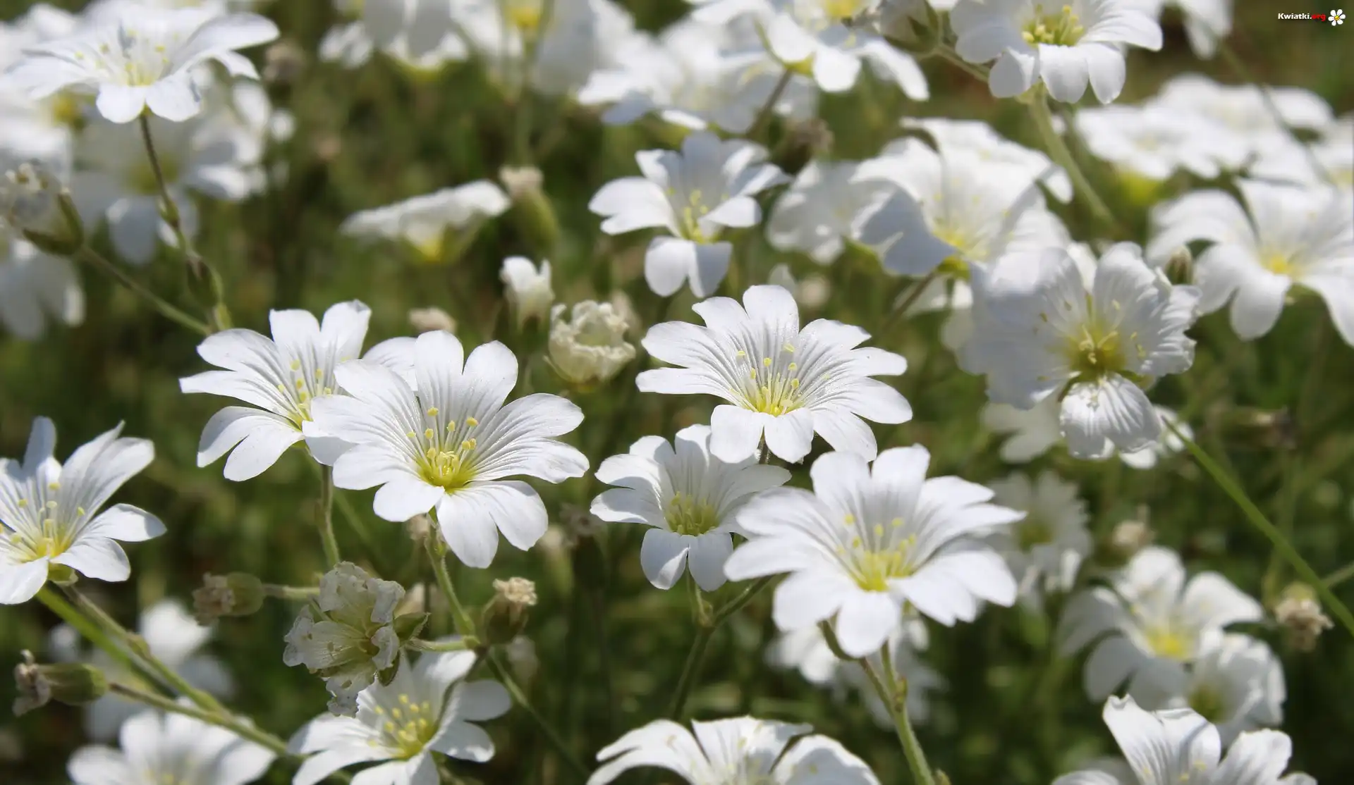 Białe, Kwiaty, Łąka, Rogownica - Zdjęcia