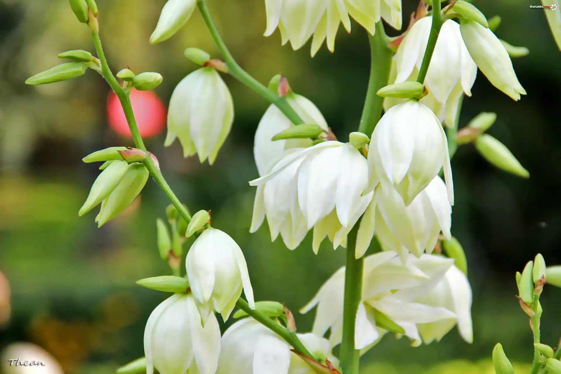 Juka, Karolińska, Biały, Kwiat, Pąki Juka, Karolińska, Białe, Kwiaty, Krople, Deszczu