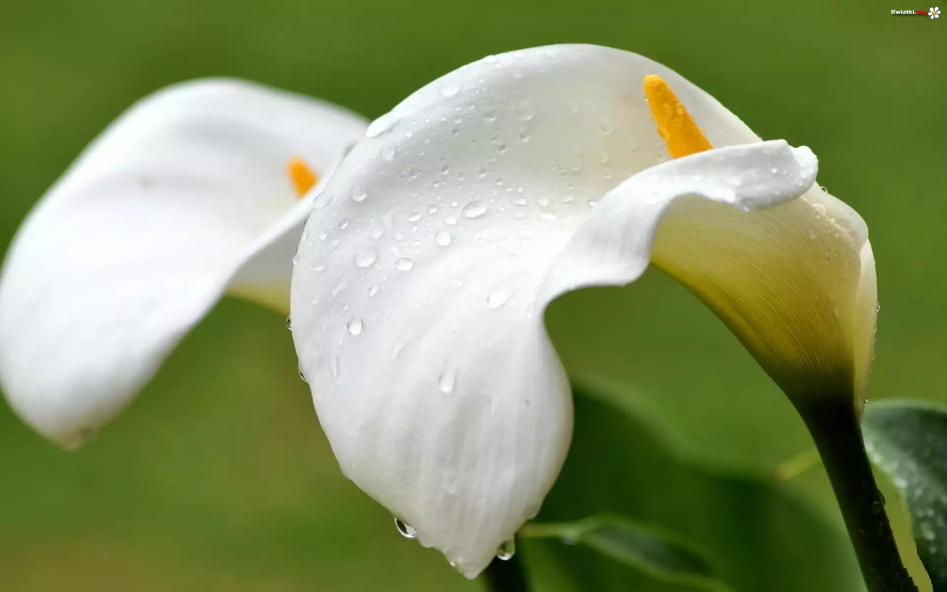 Białe, Kalie, Krople, Wody - Zdjęcia