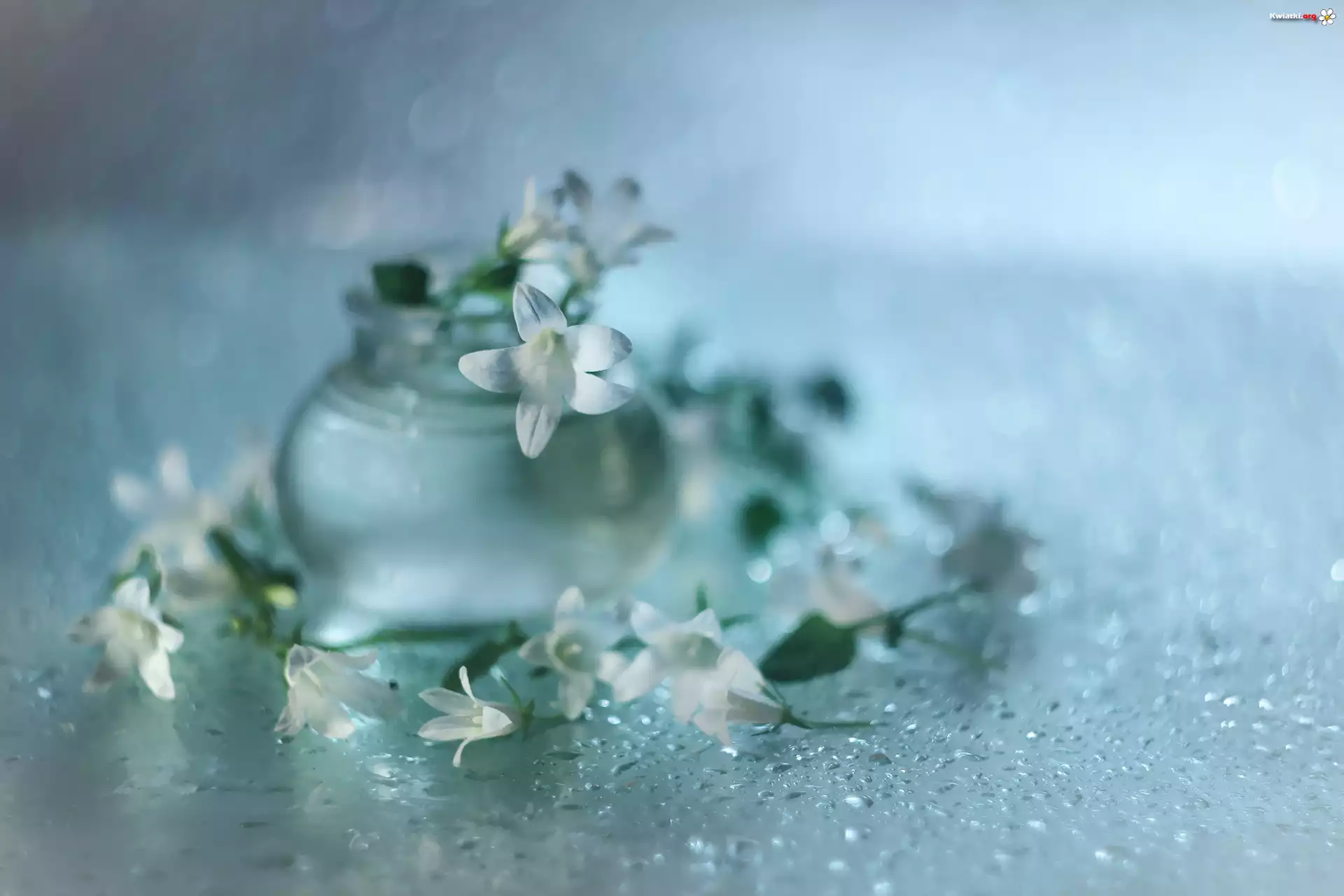 Białe, Dzwonki dalmatyńskie, Kwiaty, Wazonik - Zdjęcia