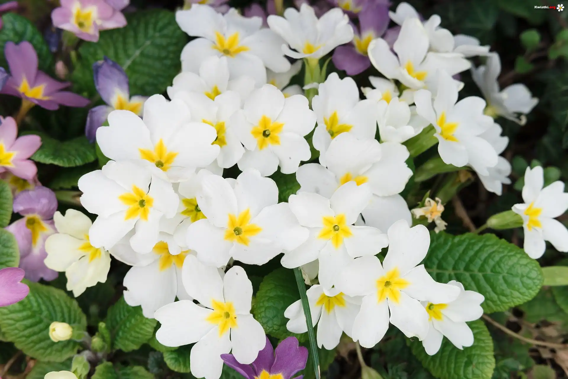 Kwiaty, Białe, Pierwiosnki - Zdjęcia