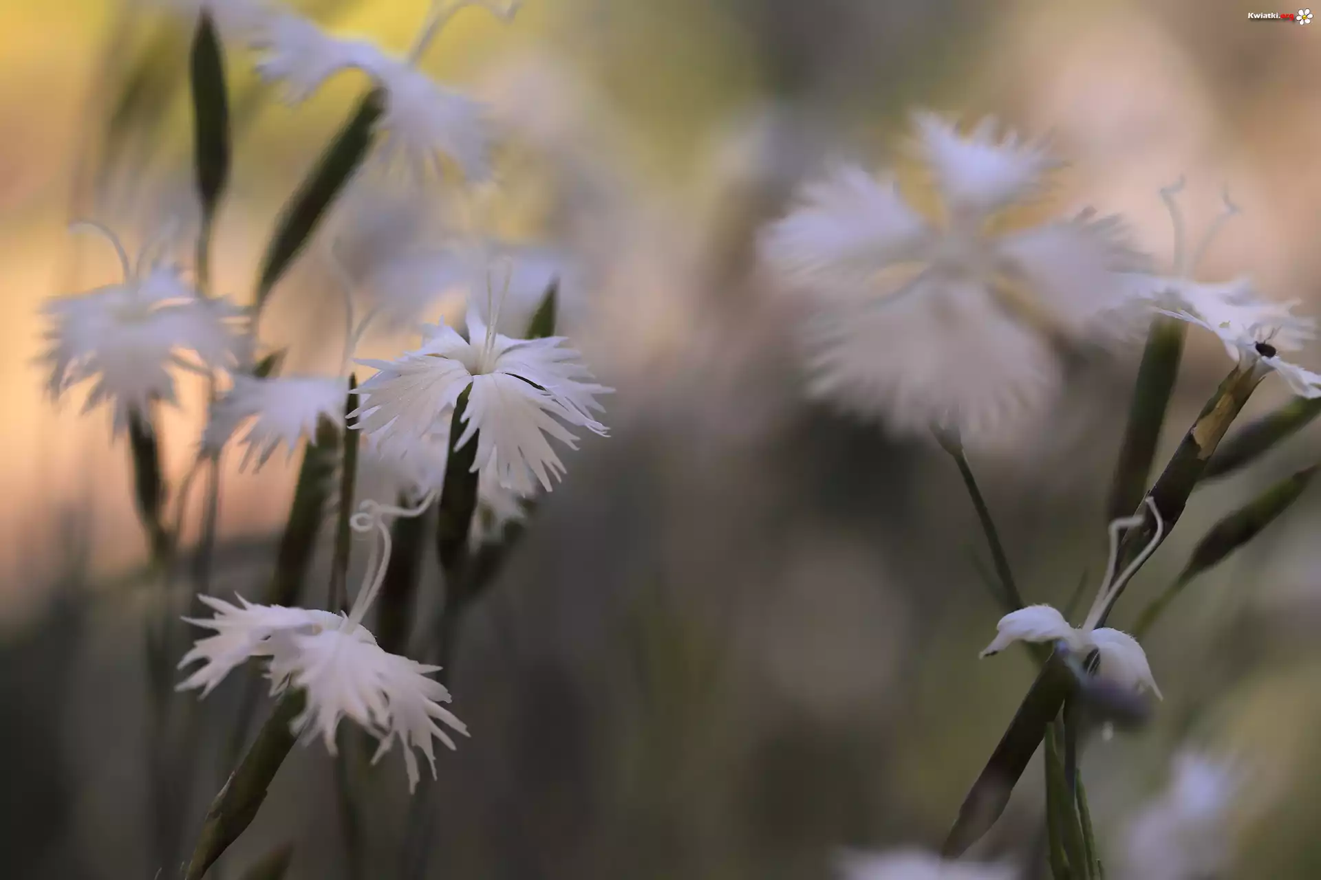 Goździki, Białe, Kwiaty, Rozmyte, Tło - Zdjęcia