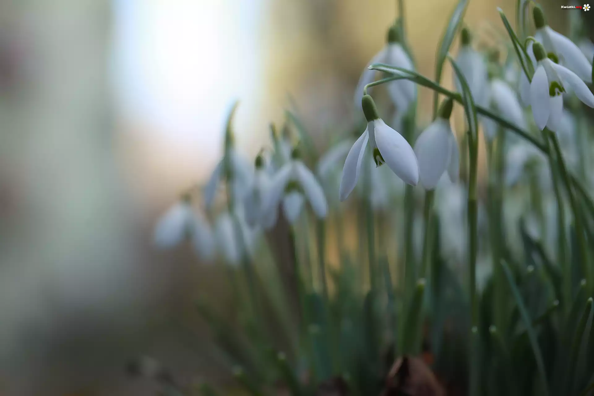 Przebiśniegi, Białe, Kwiaty, Rozmyte, Tło - Zdjęcia