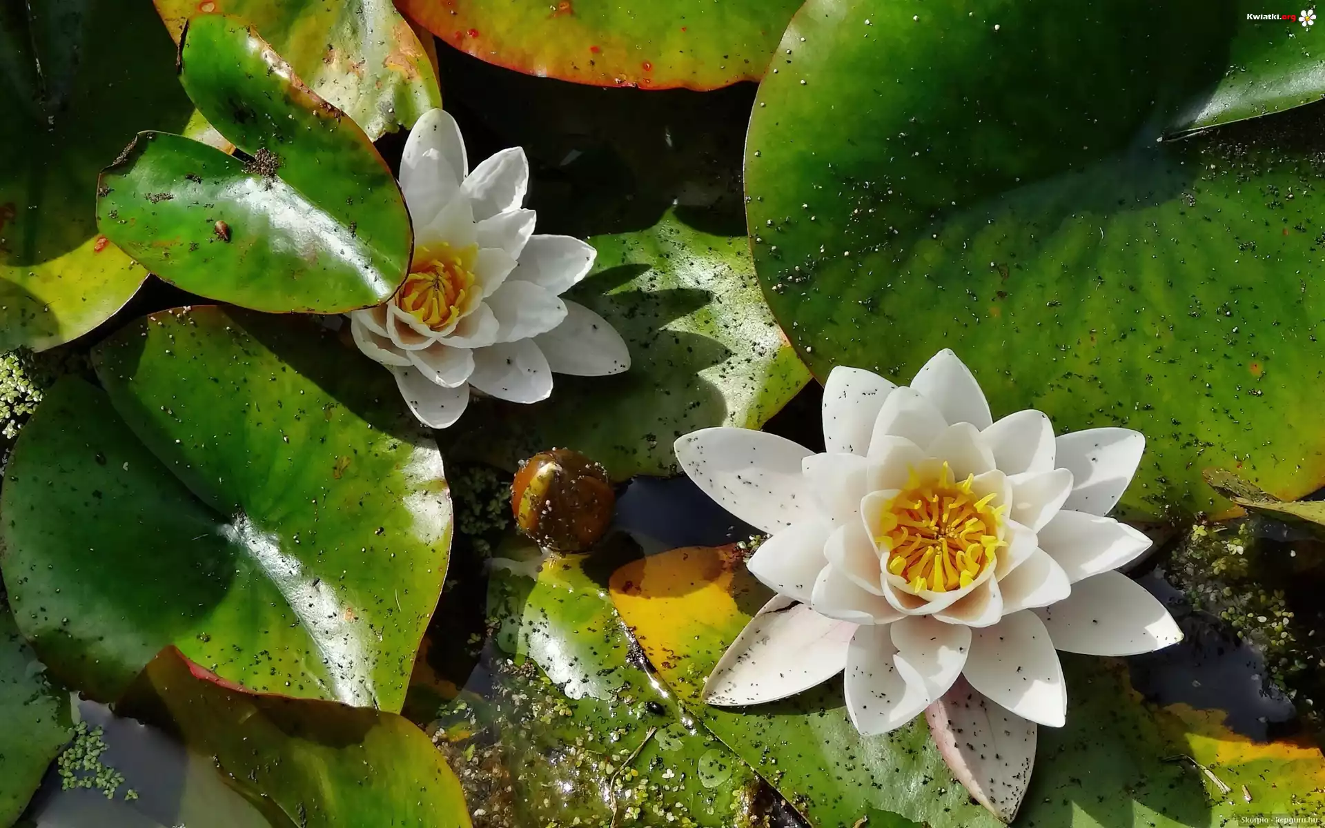 Białe, Lilie, Wodne, Liście - Zdjęcia