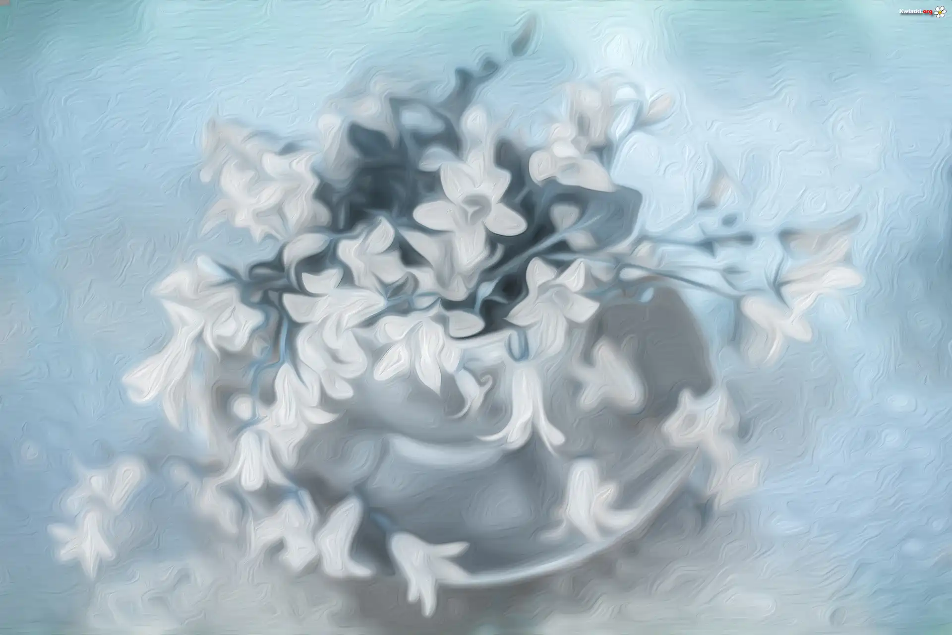 Białe, Dzwonki, Niebieskie tło - Zdjęcia
