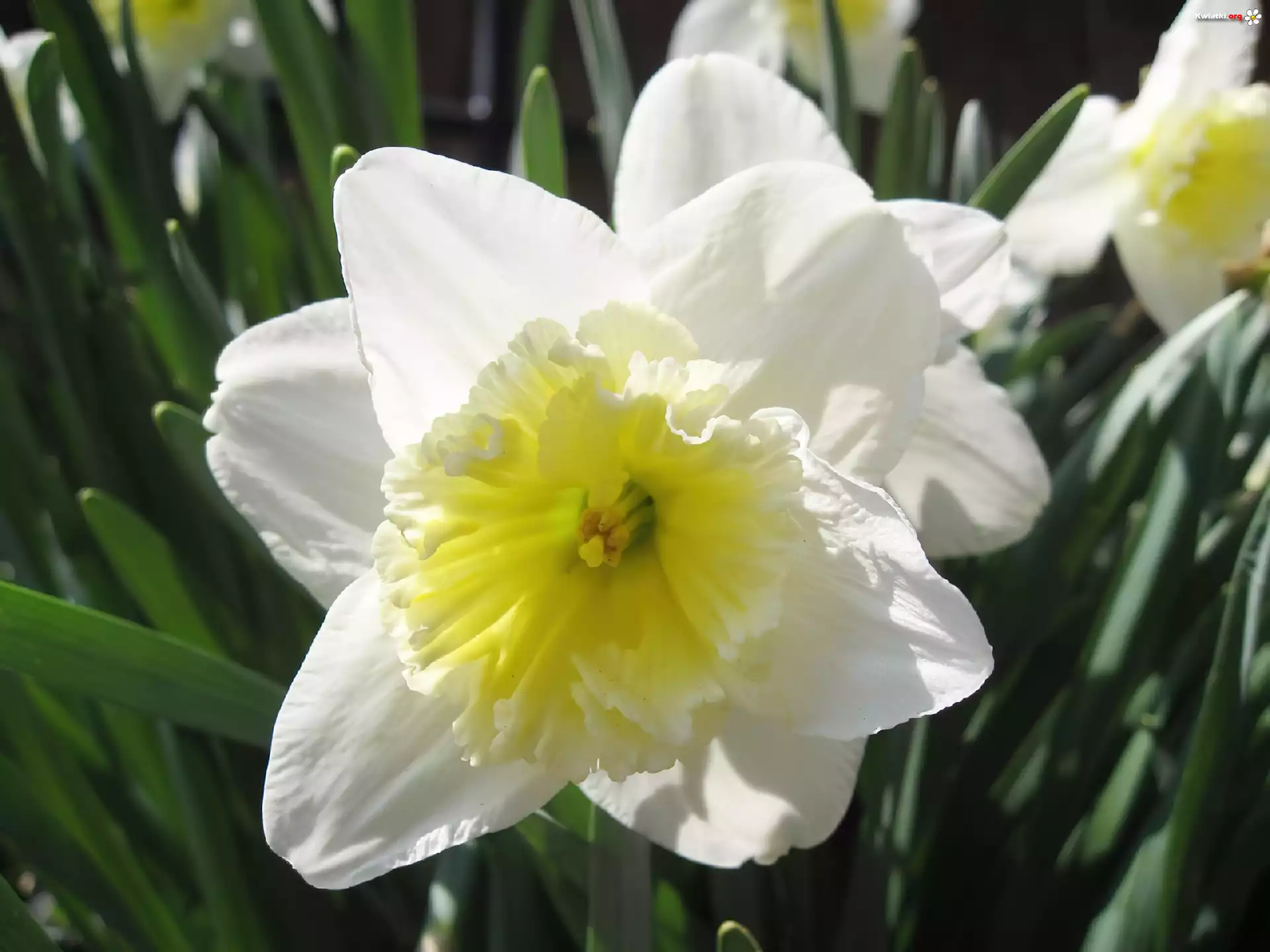 Dwa, Narcyzy Narcyze Żółte, Narcyzy Narcyze Kwiaty, Bukiet, Płatki Niebo, Żonkile Las, Dużo, Kwiatów, Żonkile, Tulipany Żonkile Kwiat, Narcyz Trawa, Konar, Żonkile Narcyzy wielokwiatowe Trzy, Zajączki, Żonkile Długie, Liście Żonkile, Tulipany, Niezapominajki
