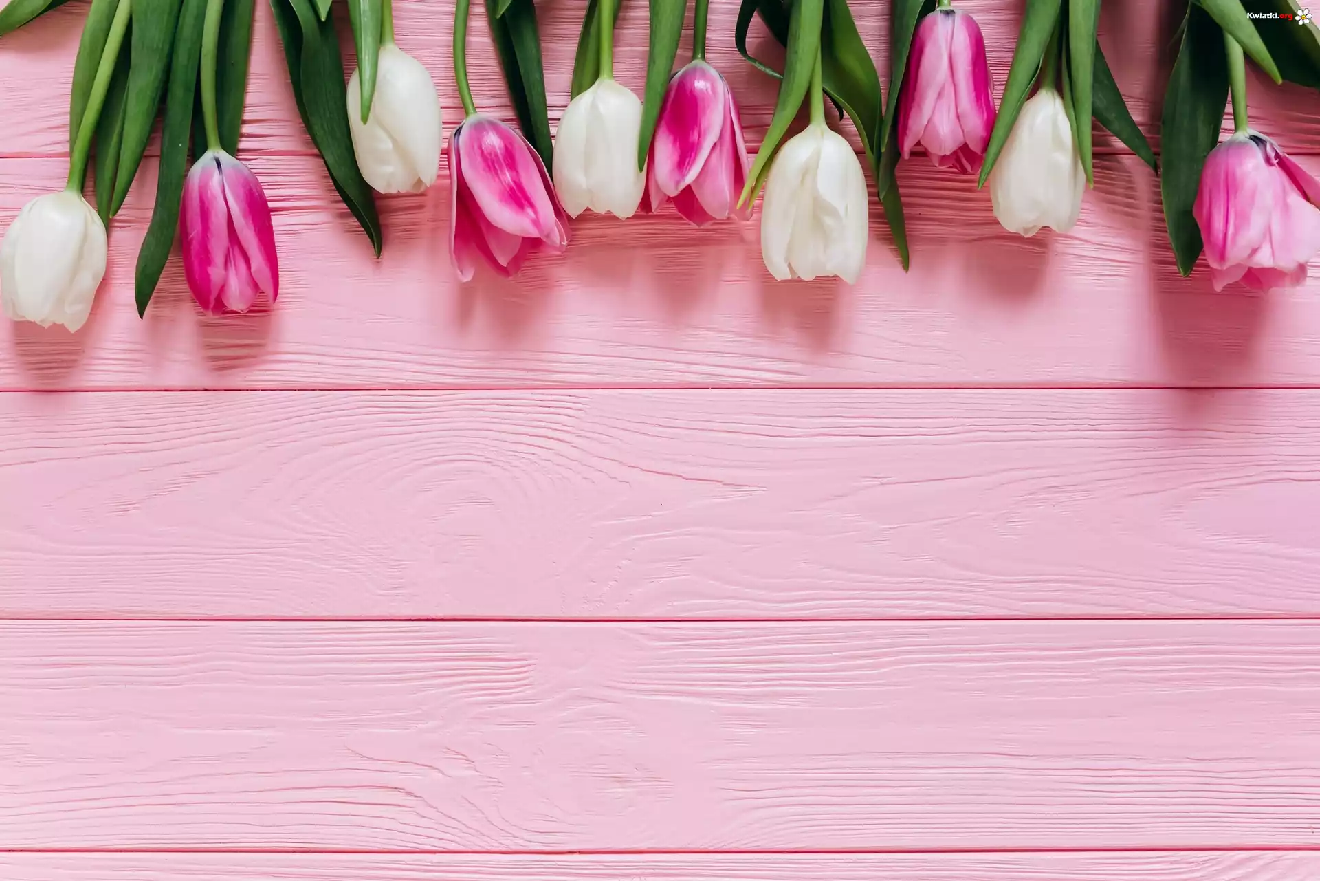 Kwiat Białe, Różowo-białe, Tulipany, Różowe, Deski