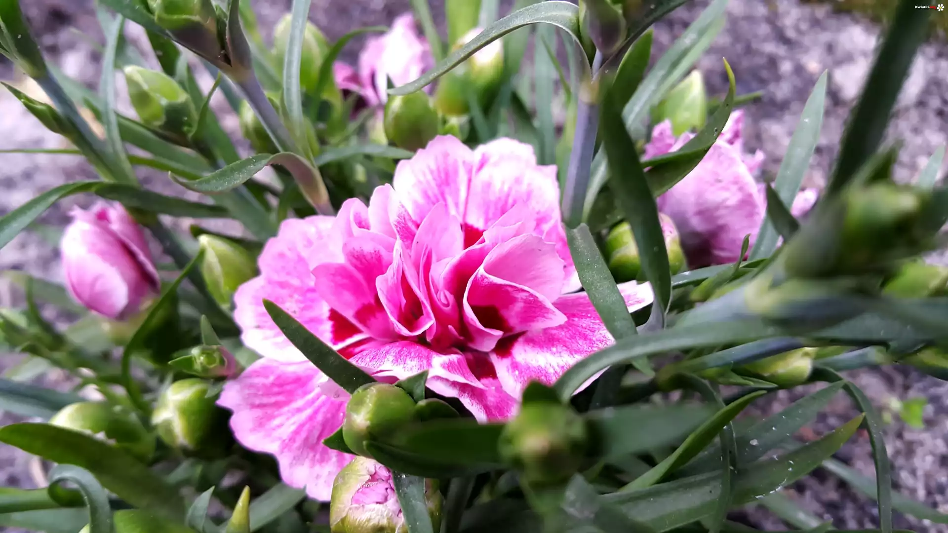 Kwiat Różowo, Białe, Goździki