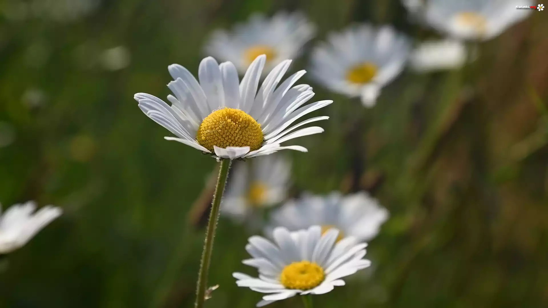 Białe, Stokrotki, Zbliżenie - Zdjęcia