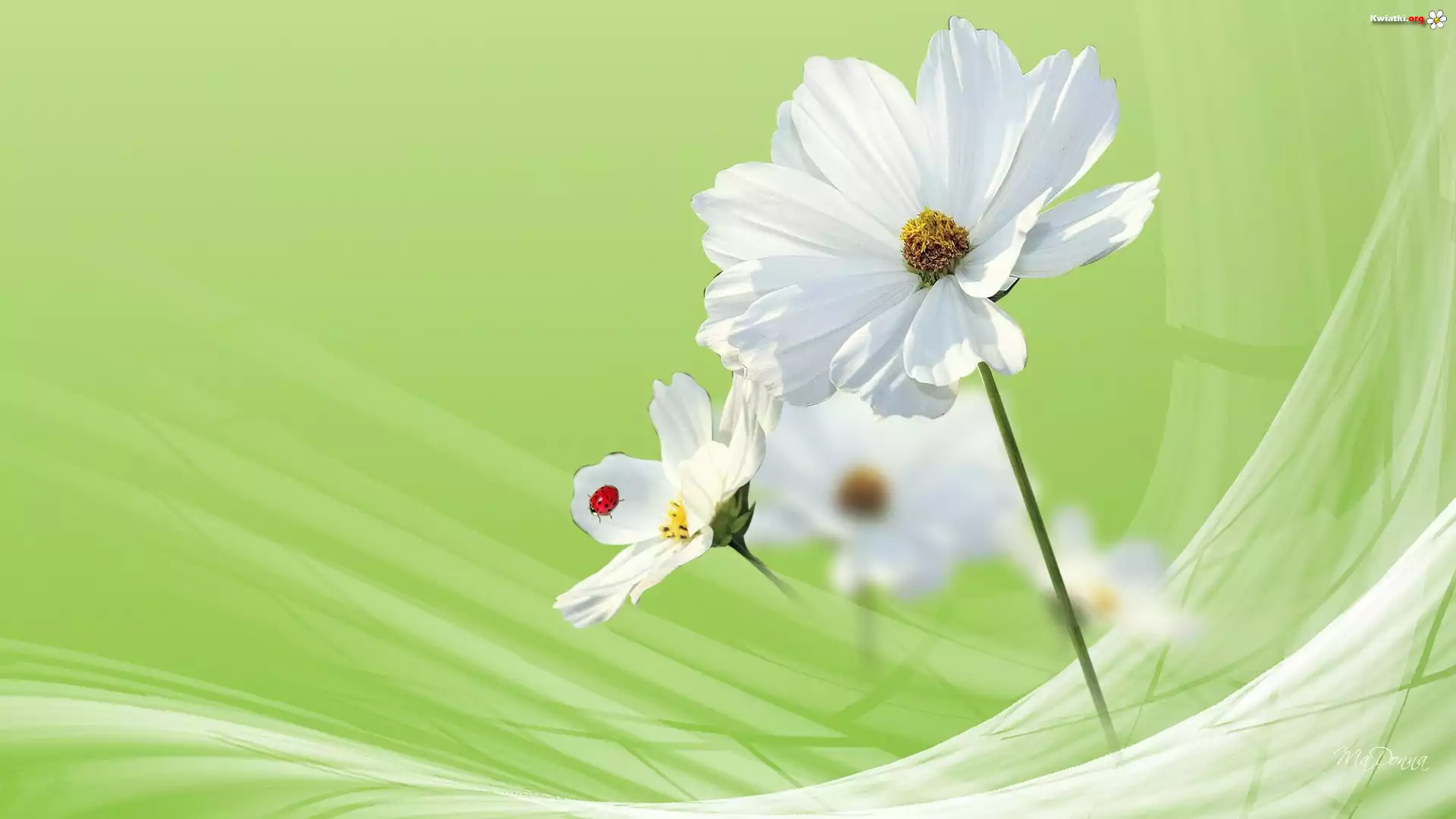 Biała, Kosmea, Zielone, Tło - Zdjęcia