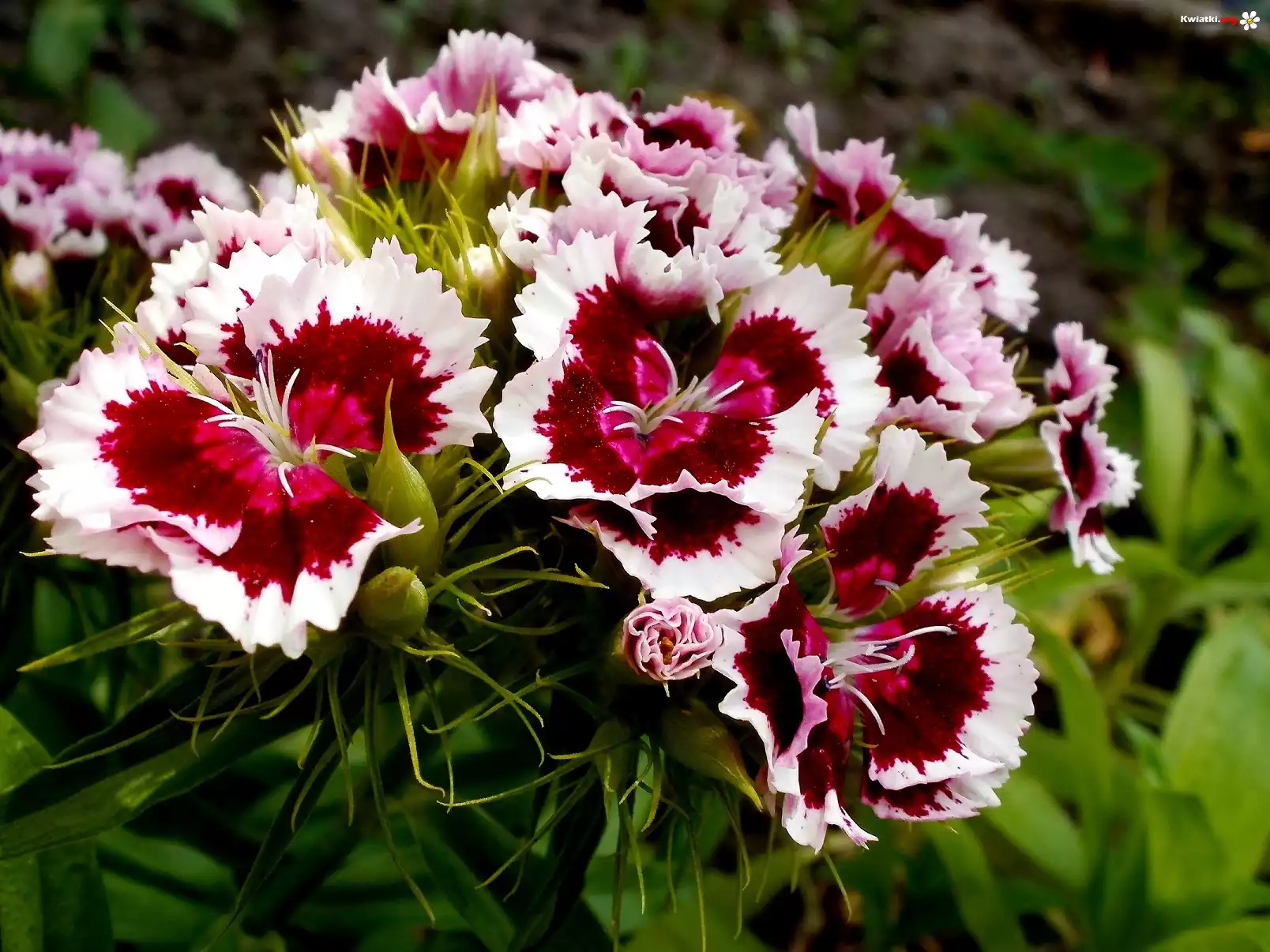 Czerwone, Różowe, Goździki, Bukiet Rowerek, Kwiaty, Goździki Szabo, Dekoracja Kwiaty, Goździki, Czerwony, Biały Goździki, Brodate Różowe, Kwiaty, Goździk, Pąki Biały, Goździk, Kwiat Purpurowo, Białe, Goździki Goździk Różowe, Goździki, Rozmycie Świeczka, Goździki, Stroik Czerwone, Goździki Goździk Kwiat, Gożdzik brodaty Polne, Kwiaty, Goździki, Łąka, Chmury