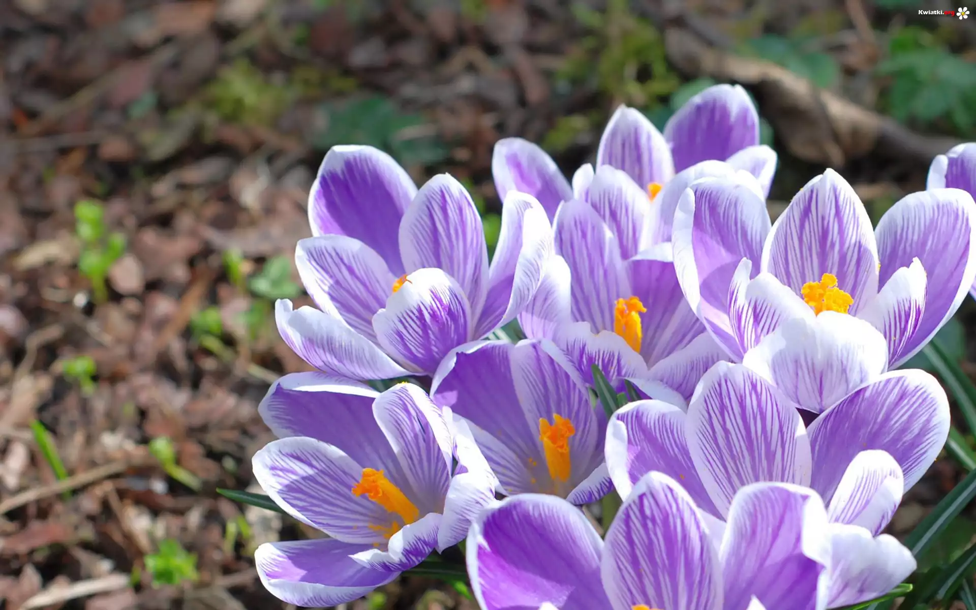 Biało, Fioletowe, Krokusy, Wiosna - Zdjęcia