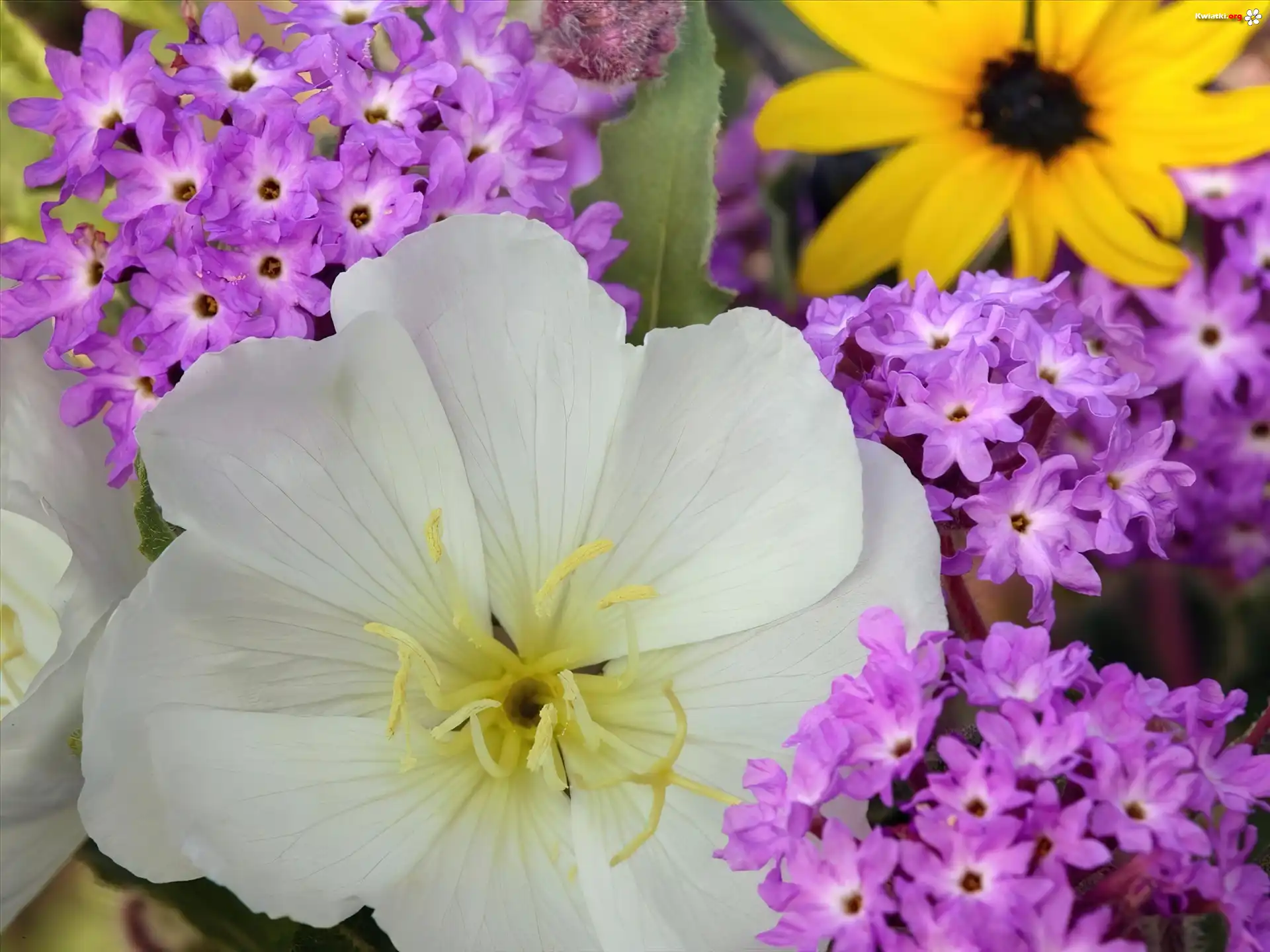Biały, Wiesiołek, Fioletowa, Werbena Werbena ogrodowa - Zdjęcia