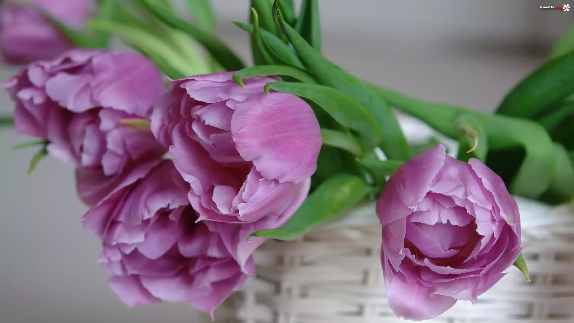 Kwiat Biały, Kosz, Fioletowe, Tulipany
