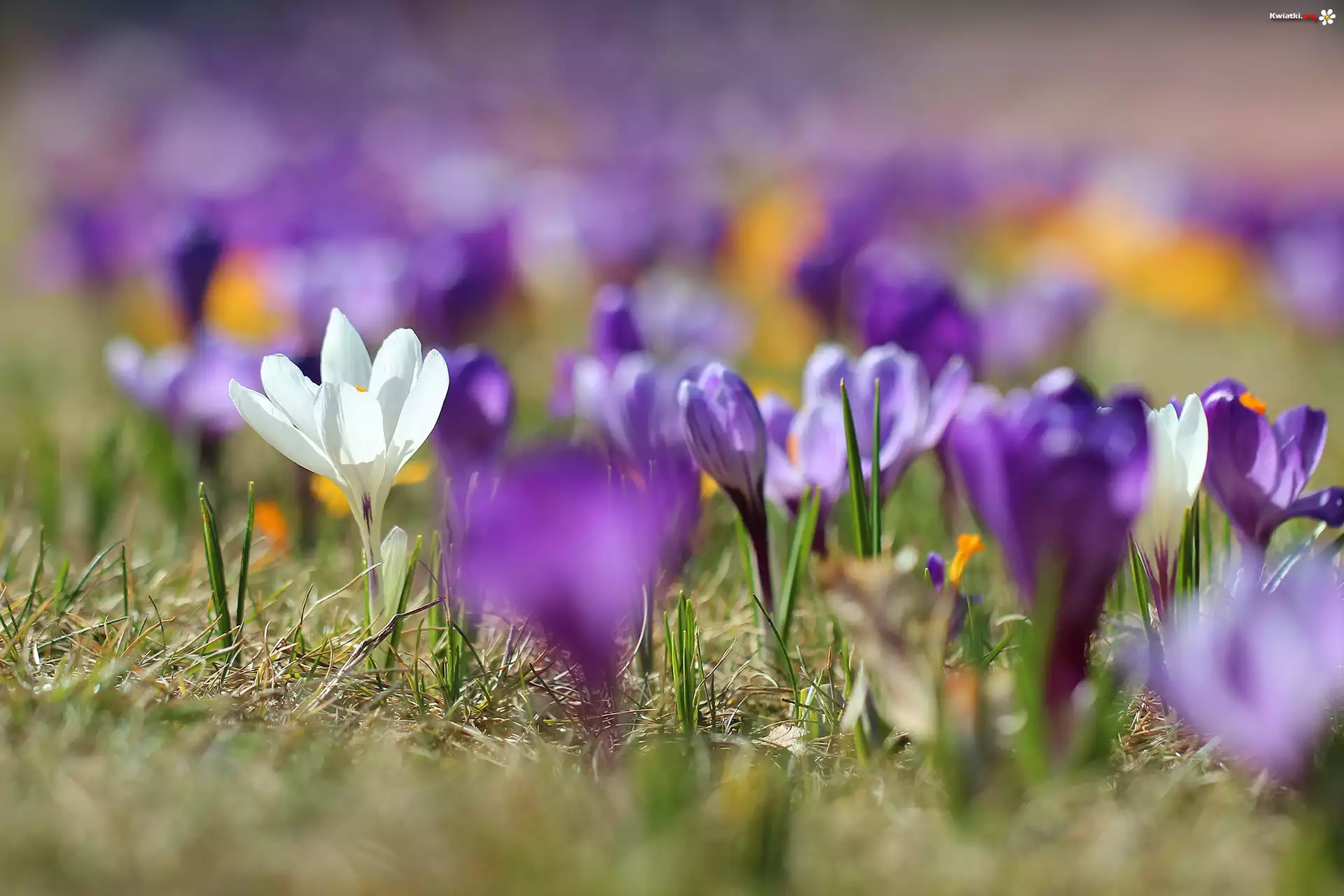 Biały, Krokus, Rozmyte, Fioletowe, Krokusy - Zdjęcia
