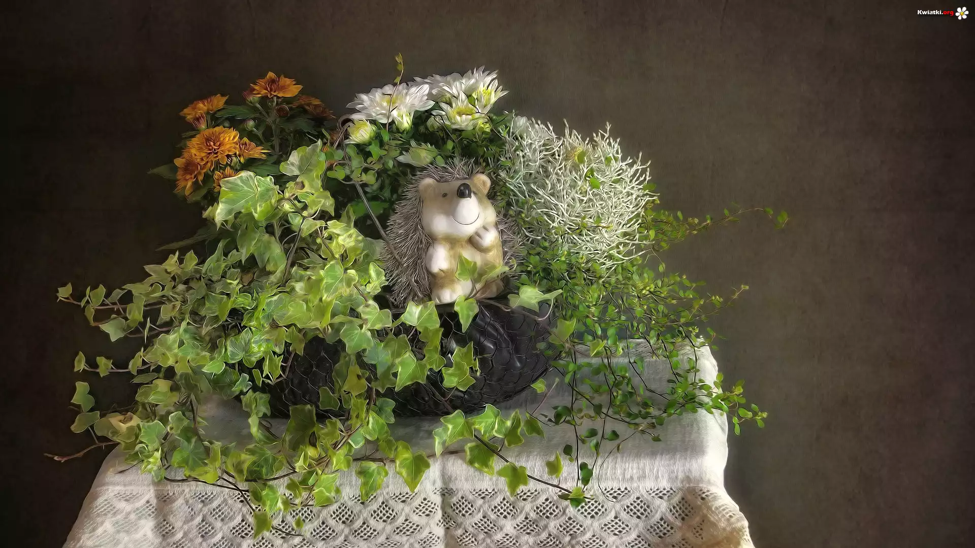 Rośliny, Bluszcz, Koszyk, Figurka, Jeż, Serweta, Grafika - Zdjęcia