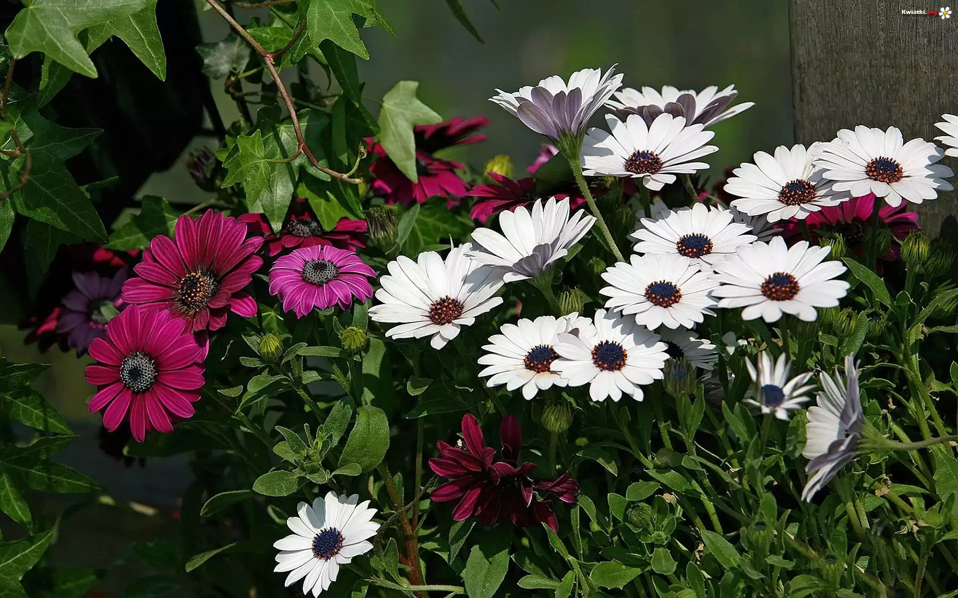 Kwiaty, Bordowe, Białe, Stkrotki afrykańskie - Zdjęcia
