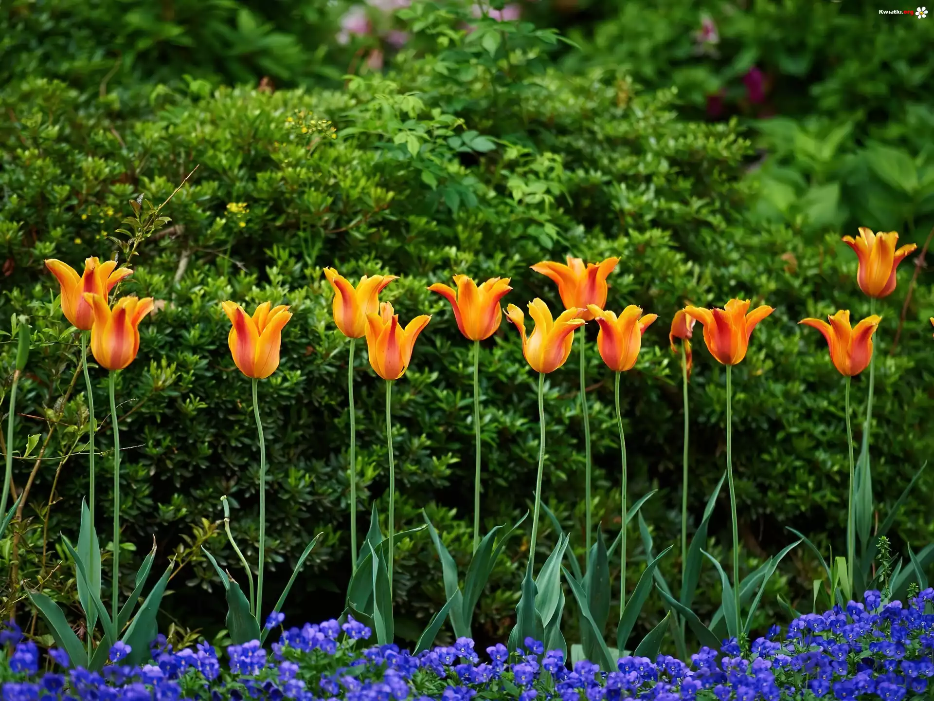 Kwiat Bratki, Tulipany, Iglaste, Krzewy