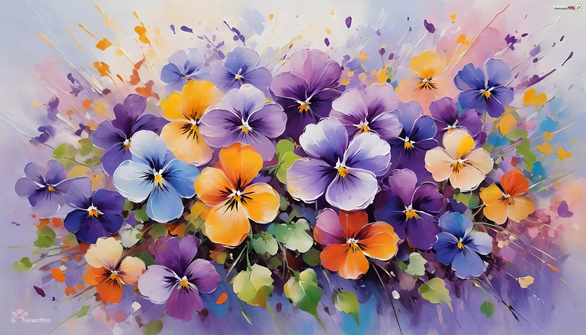 Kolorowe, Bratki, Kwiaty, Grafika AI - Zdjęcia