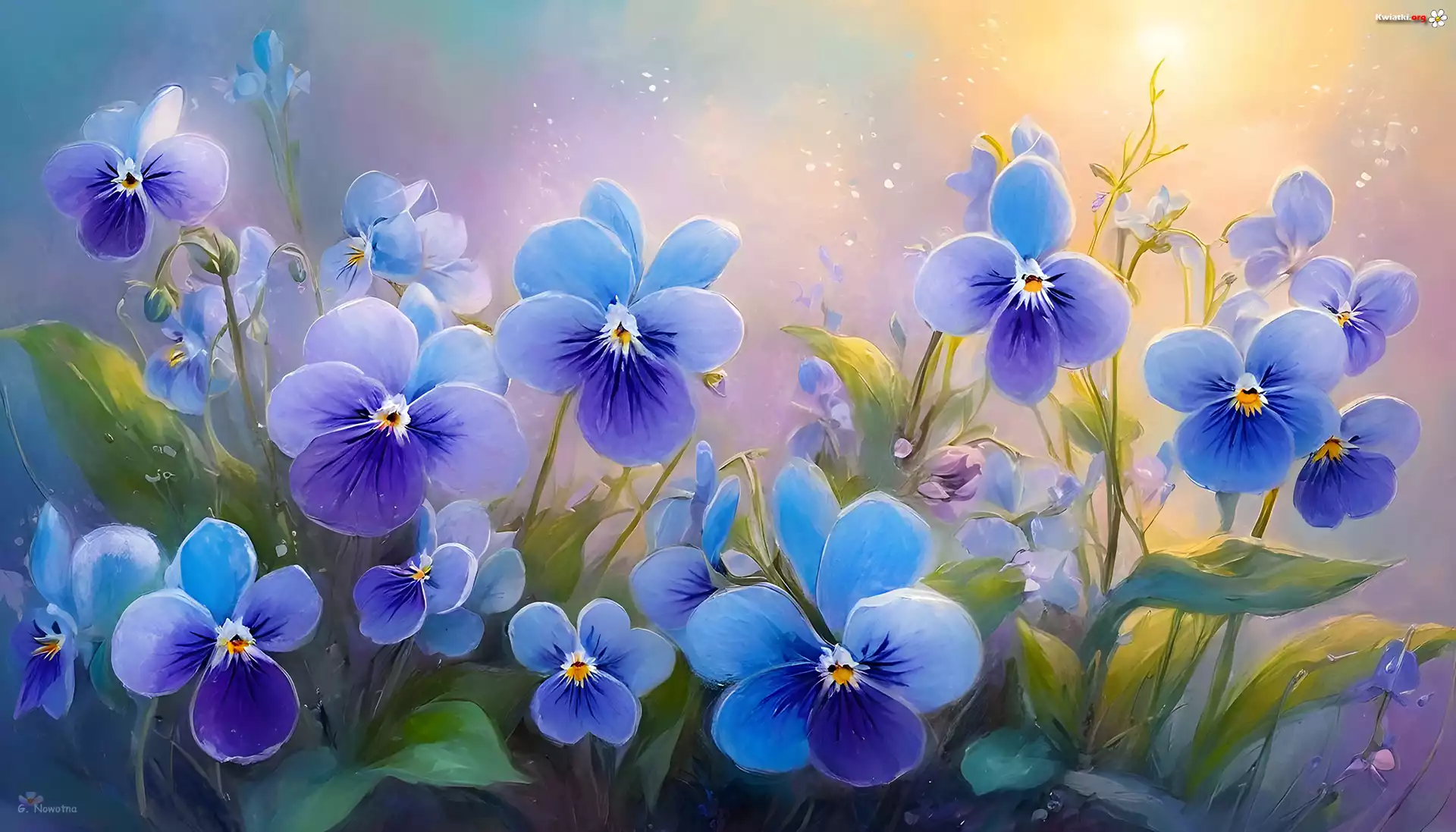 Niebieskie, Bratki, Kwiaty, Grafika AI - Zdjęcia