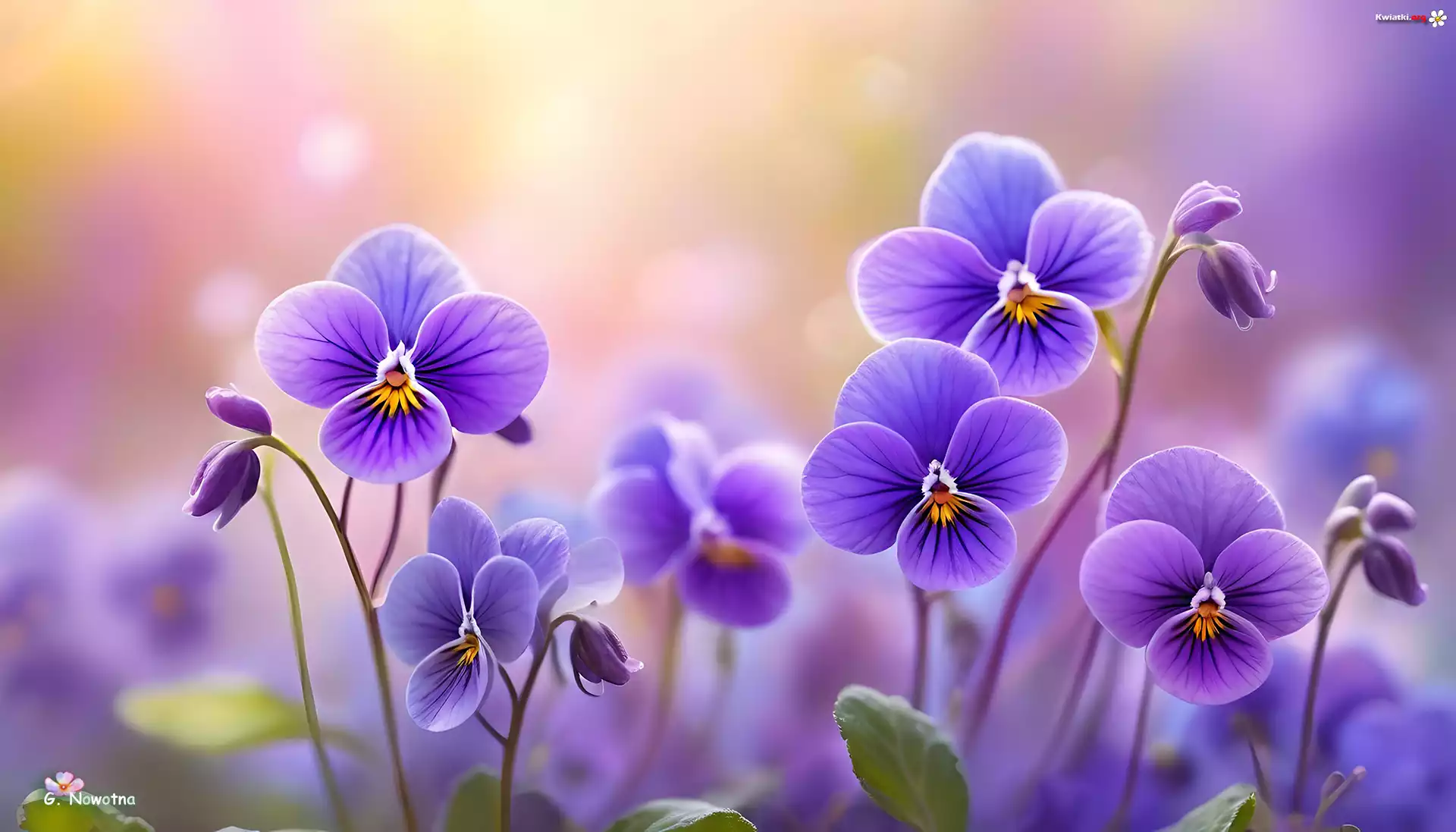 Fioletowe, Bratki, Pąki, Kwiaty, Grafika - Zdjęcia