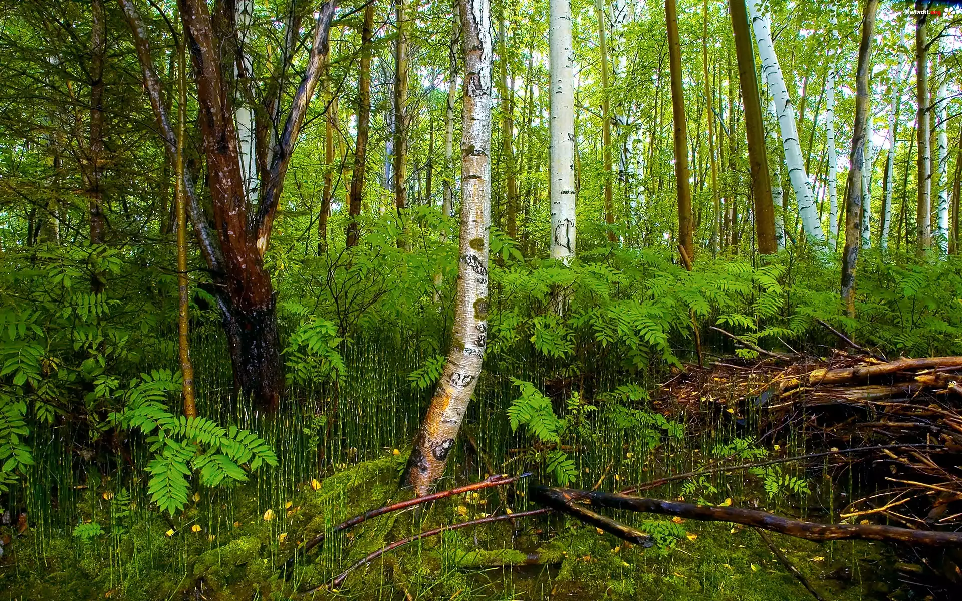 Brzozy, Paprocie, Zielony, Las - Zdjęcia
