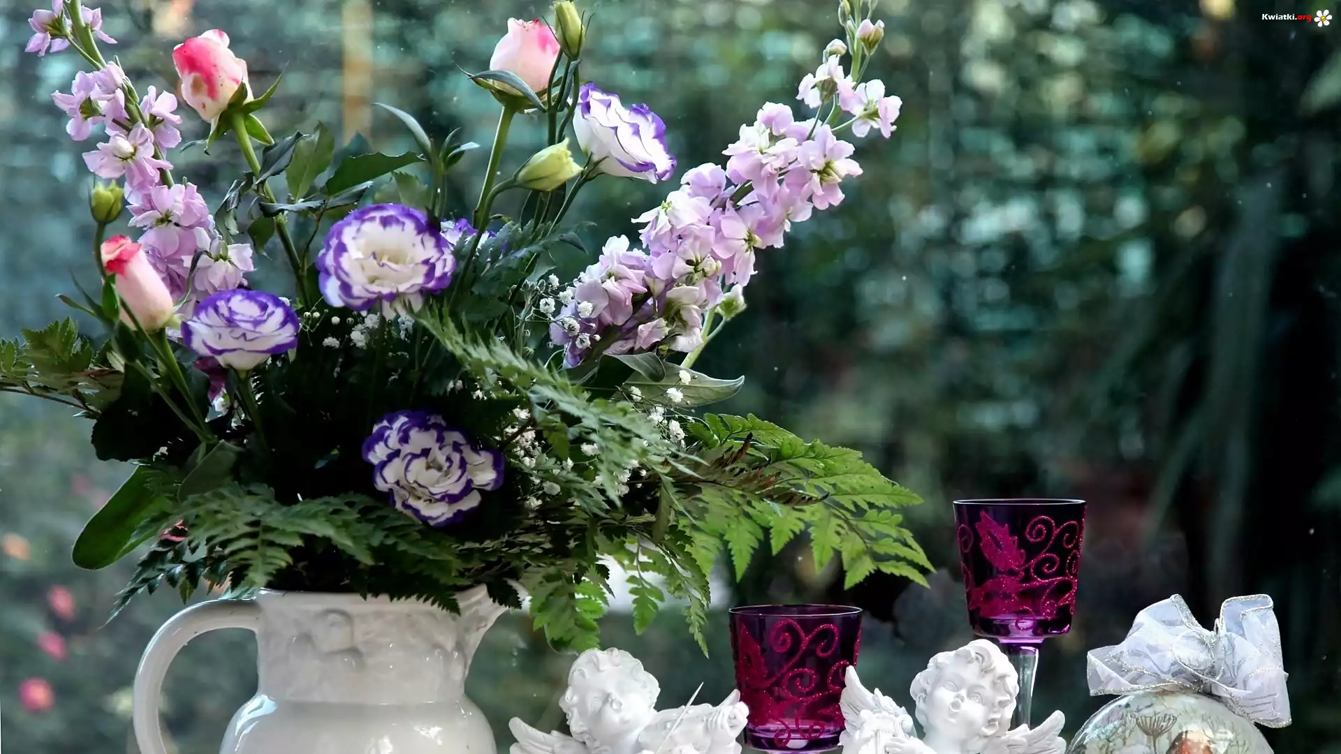 Bukiet, Kwiatów, Ceramika, Szkło - Zdjęcia