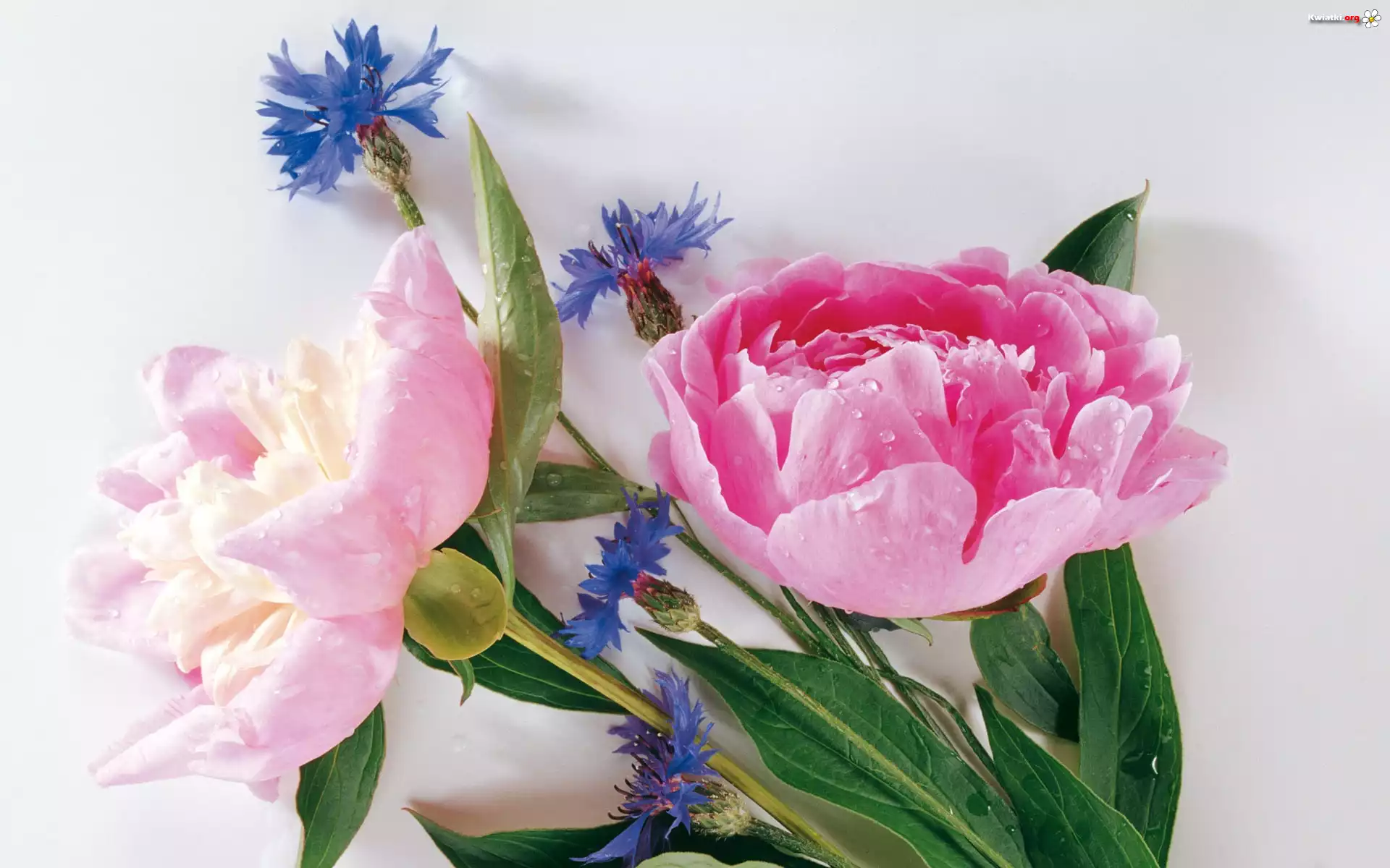 Bukiet, Kwiatów, Niebieskie, Chabry, Piwonie - Zdjęcia