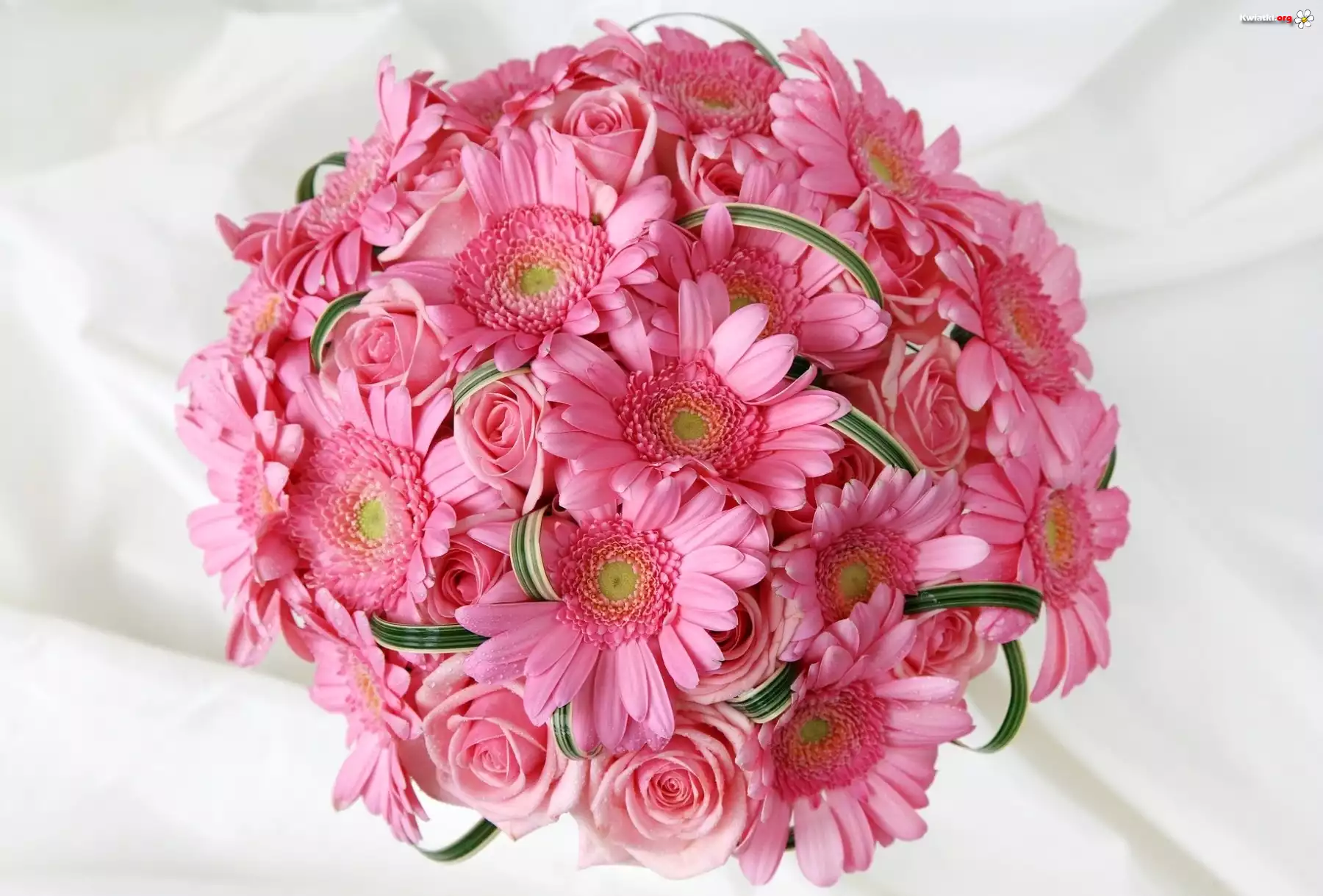 Kwiat Bukiet, Różowych, Gerberów, Róż