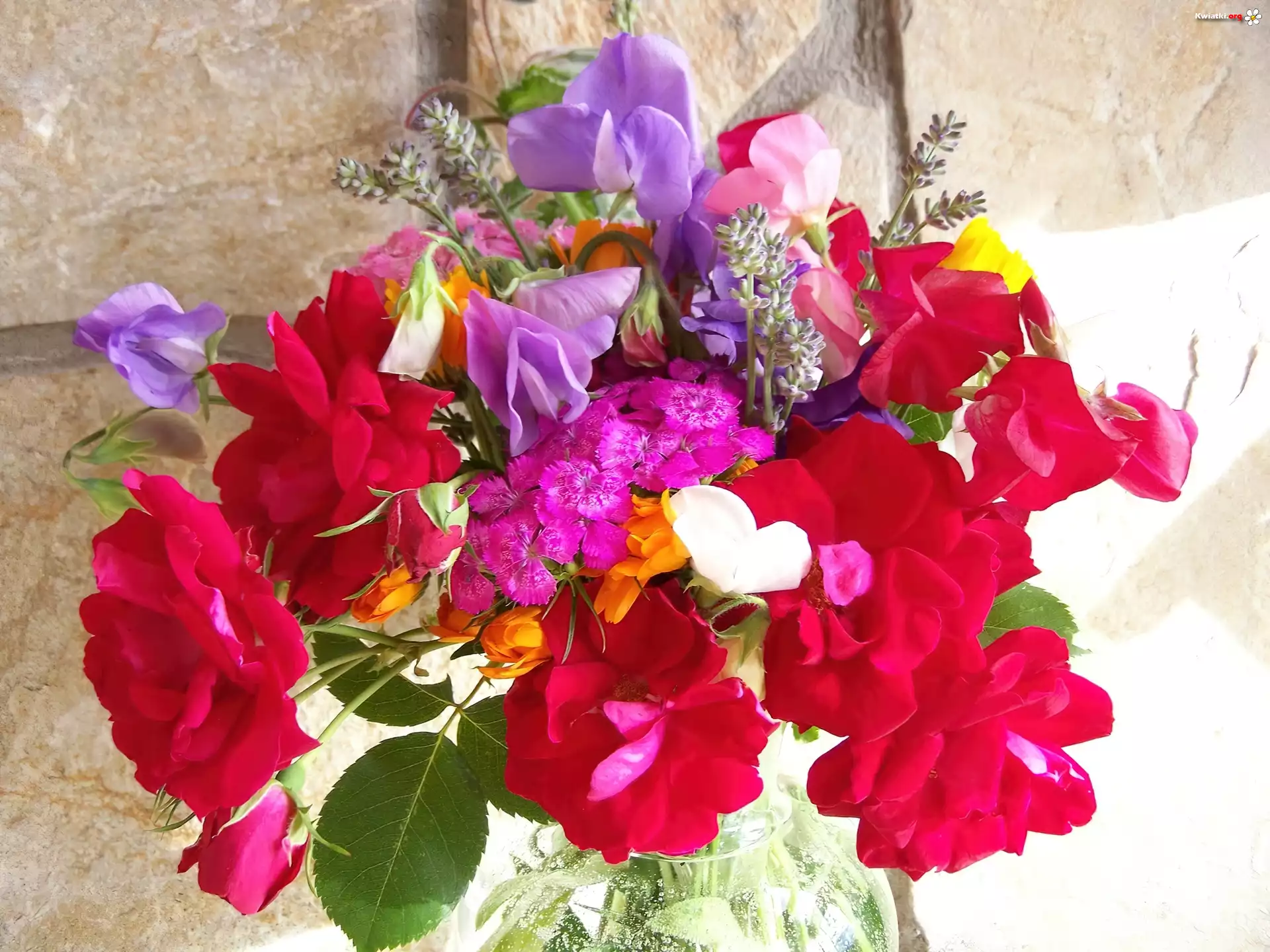 Bukiet, Kwiatów, Groszki, Róże - Zdjęcia