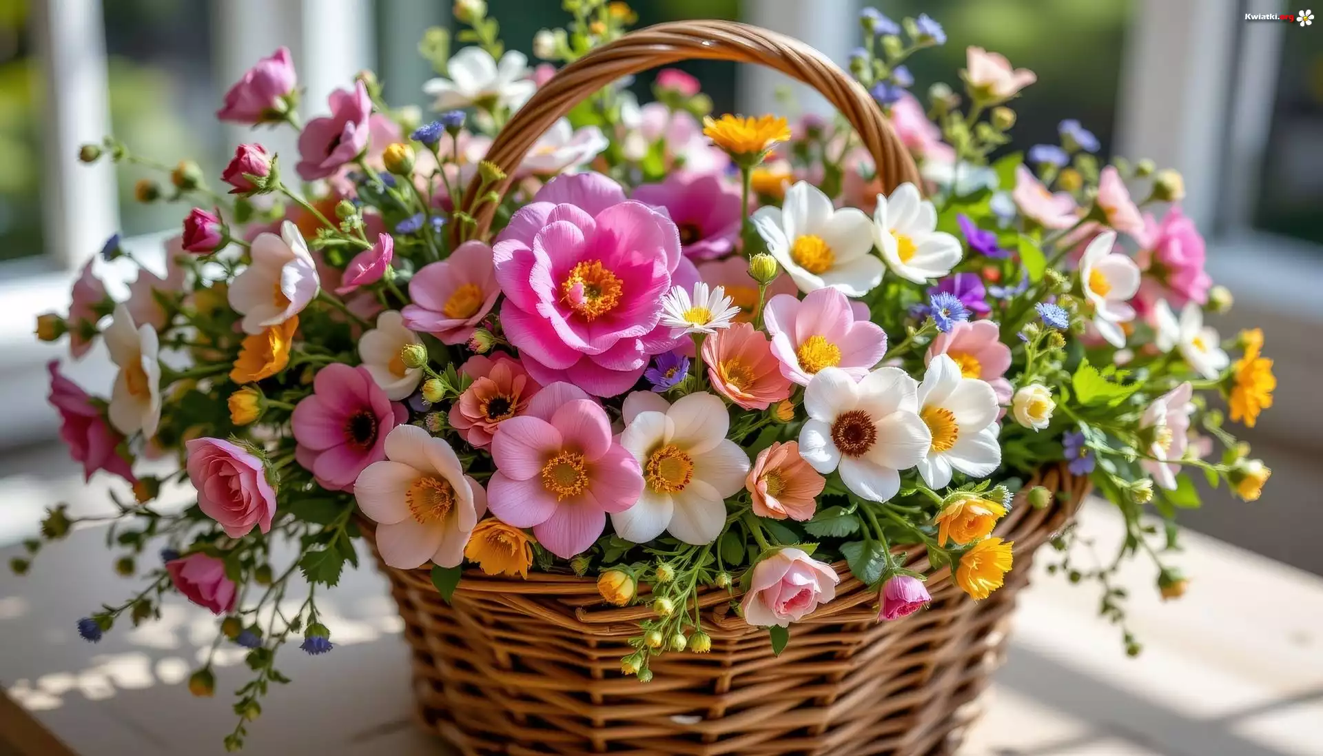 Kwiaty, Bukiet, Koszyk, Stół, Okno - Zdjęcia