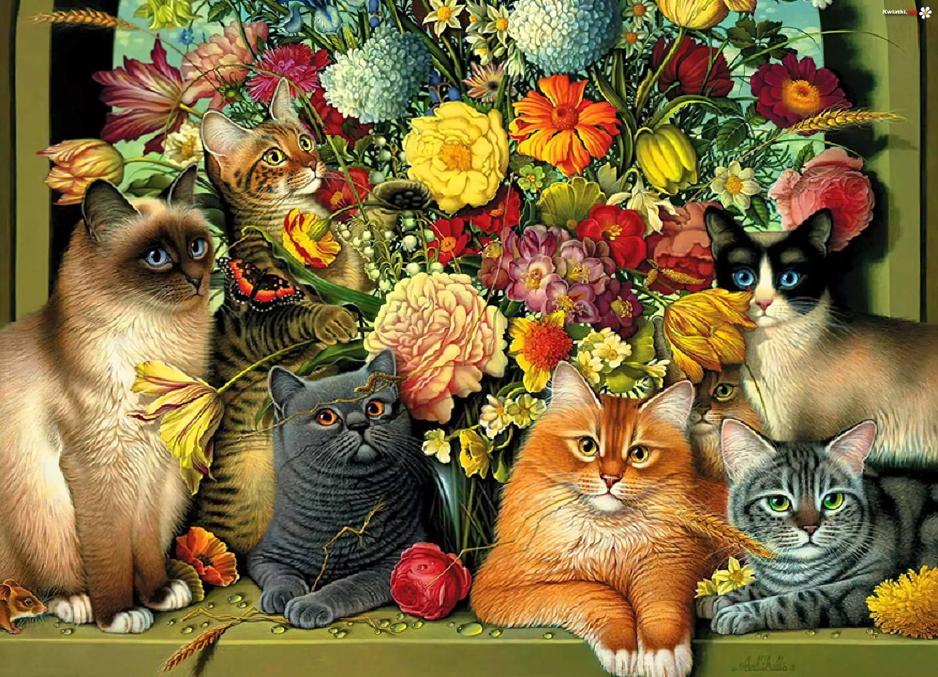 Koty, Bukiet, Kwiatów - Zdjęcia
