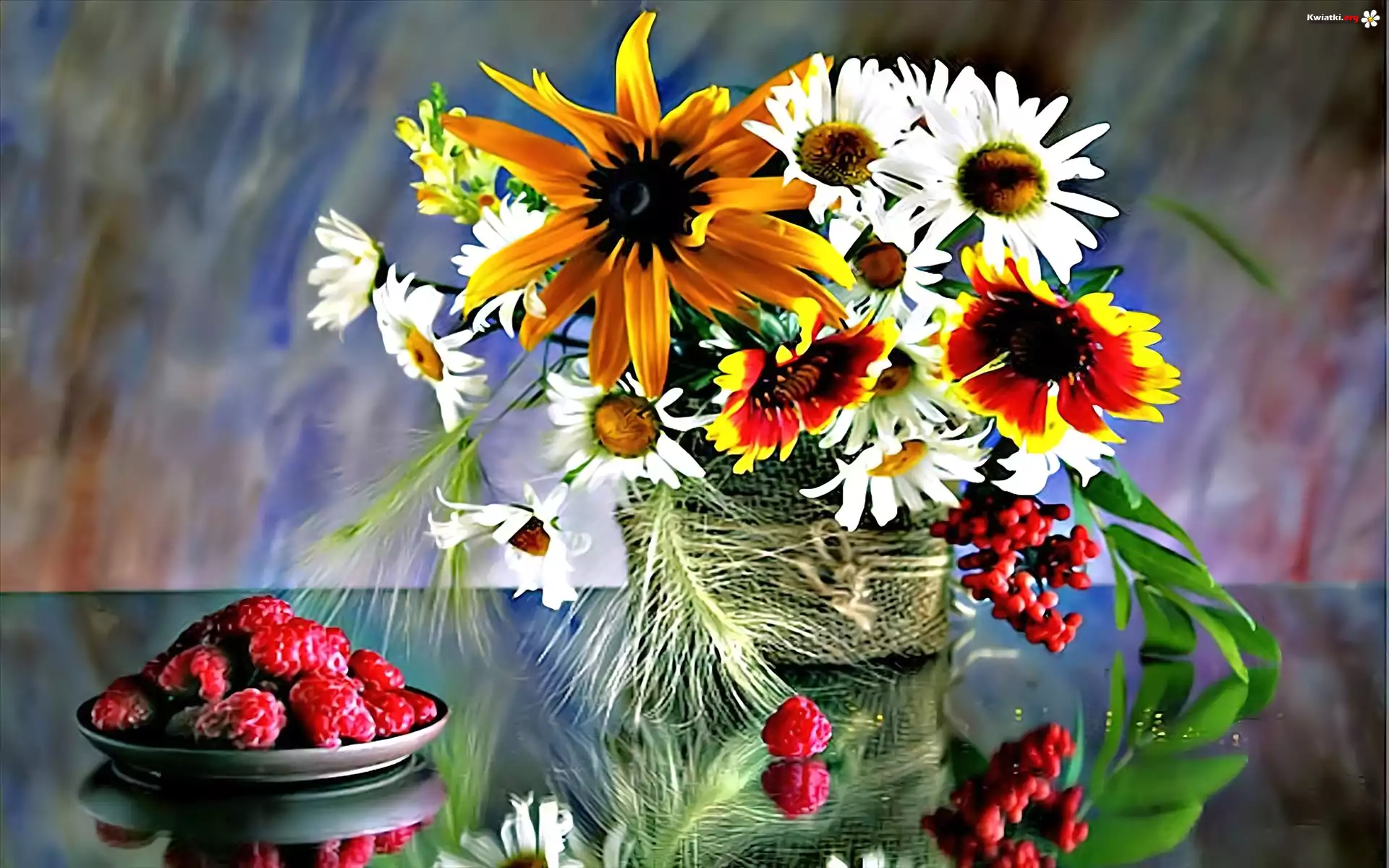 Kwiaty, Bukiet, Maliny - Zdjęcia