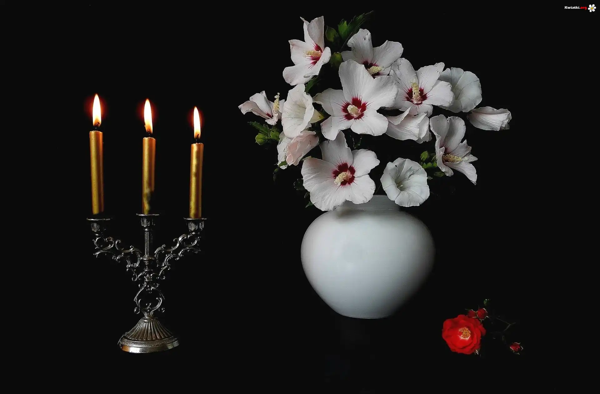 Kwiaty, Bukiet, Swiecznik - Zdjęcia