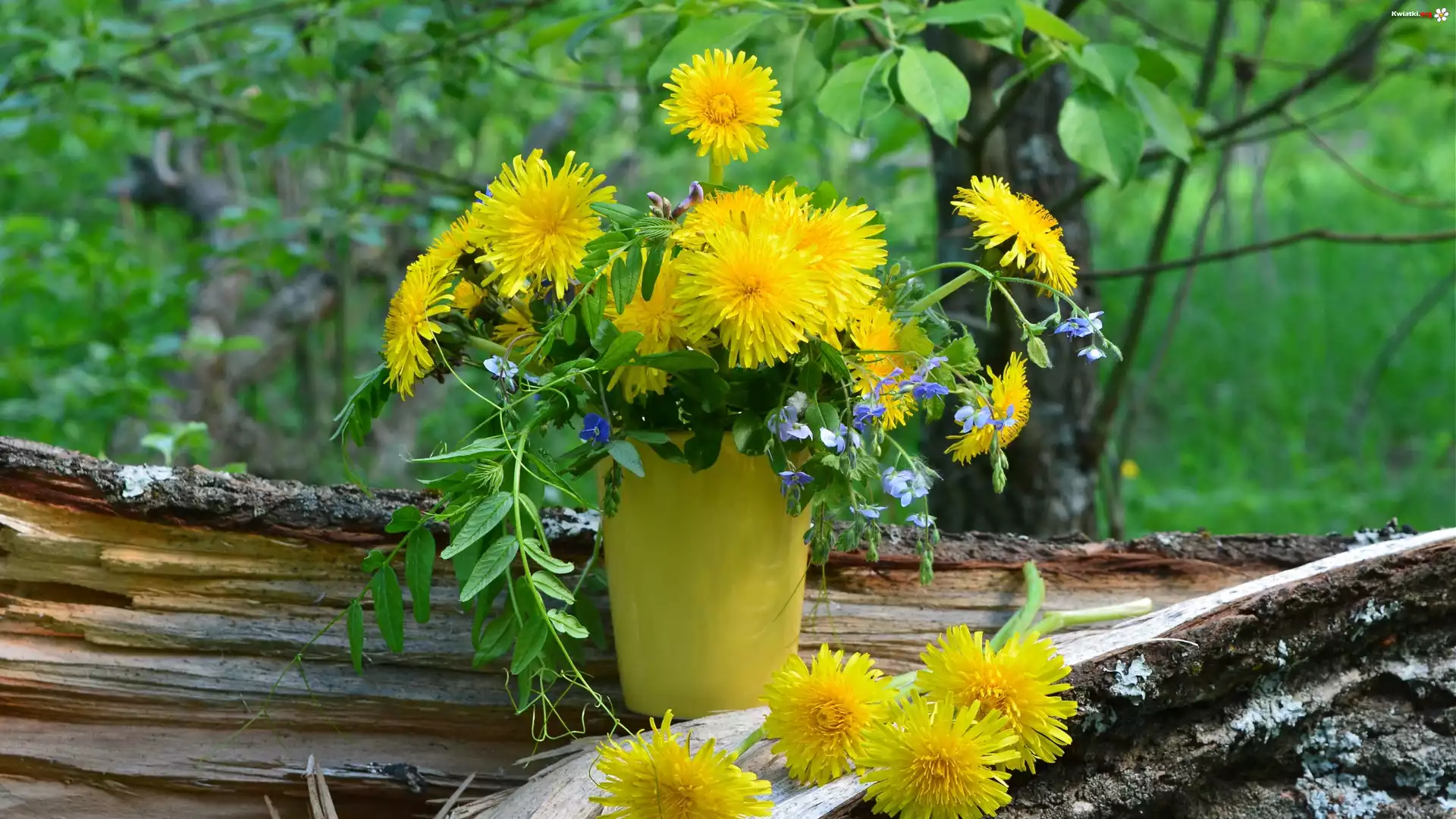 Bukiet, Kwiaty, Mniszek lekarski, Wazon - Zdjęcia