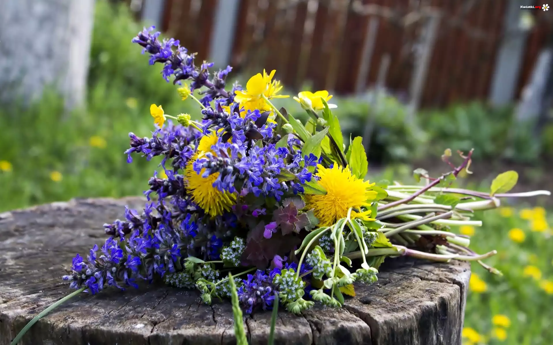 Bukiet, Polne, Kwiaty, Mniszek, Pień - Zdjęcia
