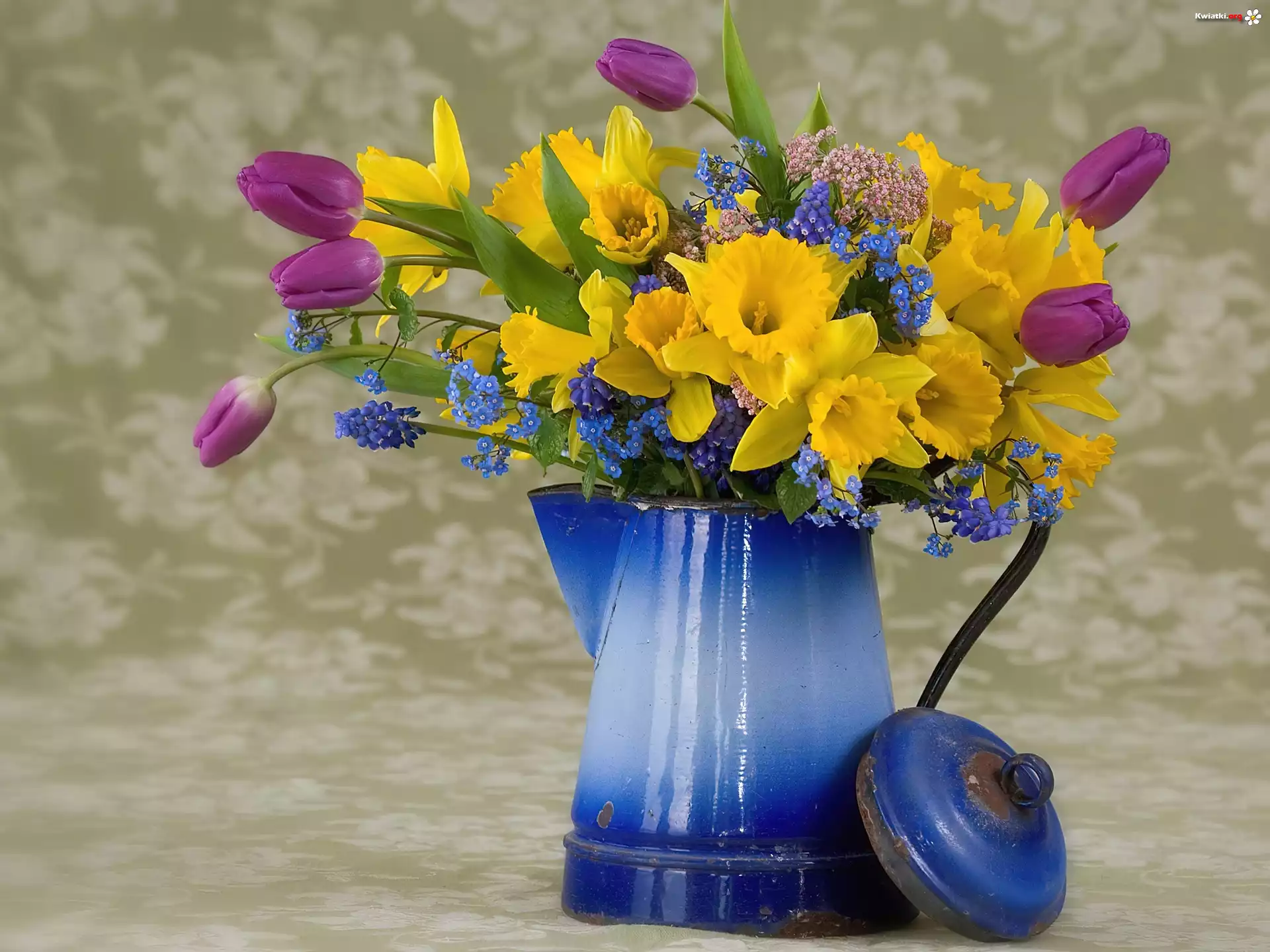 Bukiet, Wiosennych, Kwiatków, Niebieski, Dzbanek - Zdjęcia