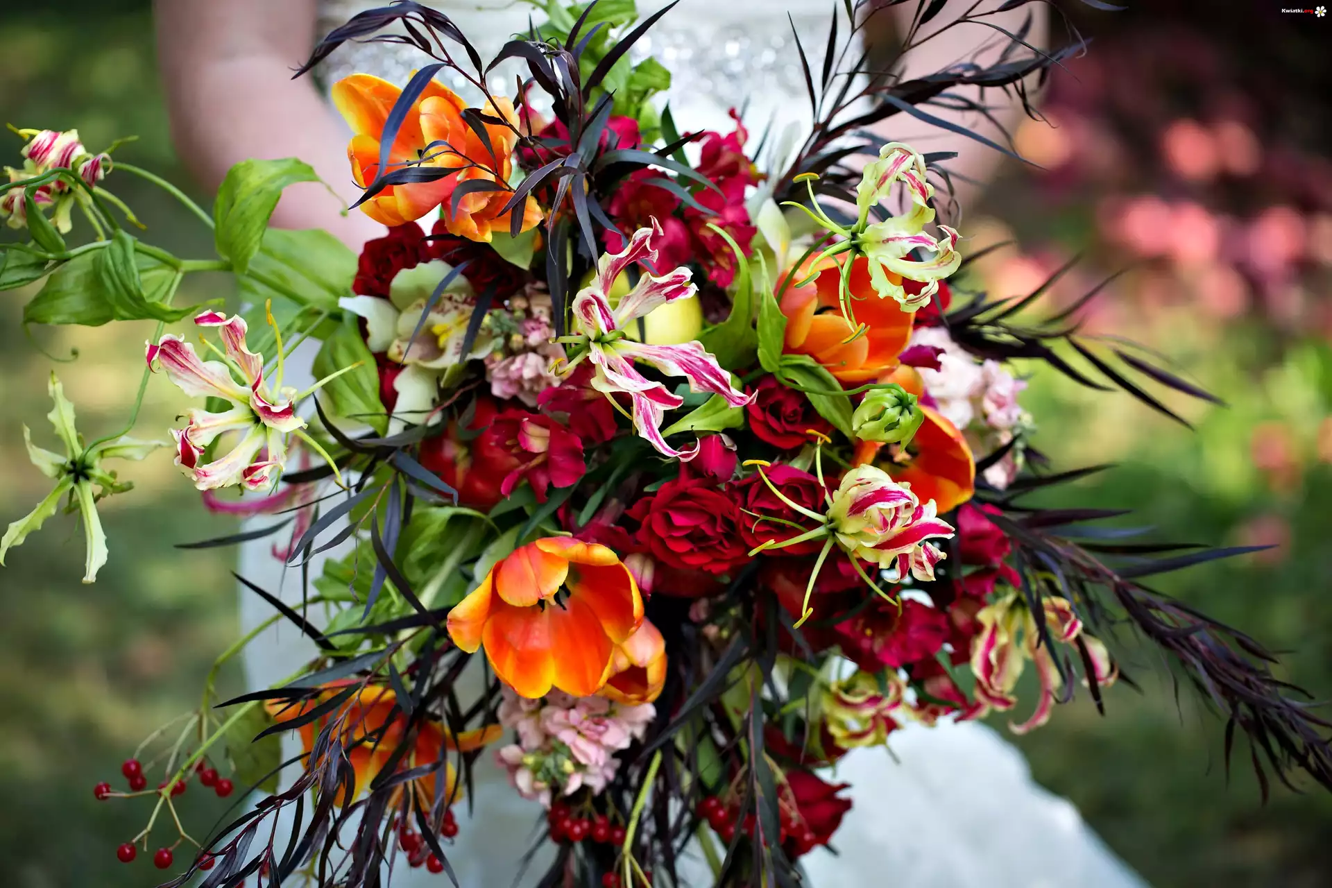 Bukiet Kwiatów, Róża, Tulipany, Orchidea, Alstroemeria - Zdjęcia